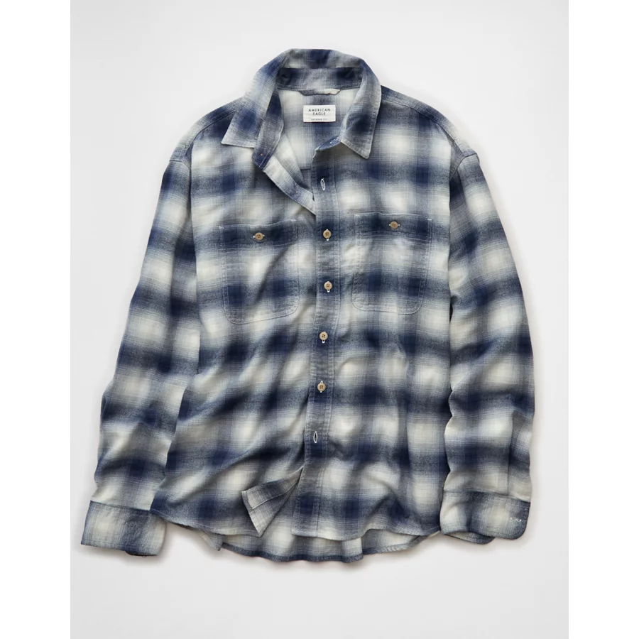 AE Relaxed Fit Everyday Flannel Shirt - Cerulean Blue