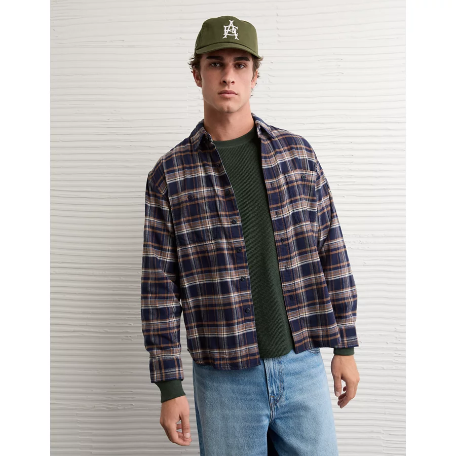 AE Relaxed Fit Everyday Flannel Shirt – Rich Navy