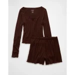 AE Ribbed Plush PJ Set – Brown