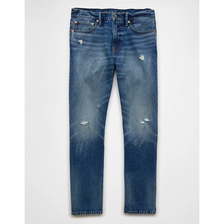 AE Ripped Original Straight Jean – Destroyed Medium Wash