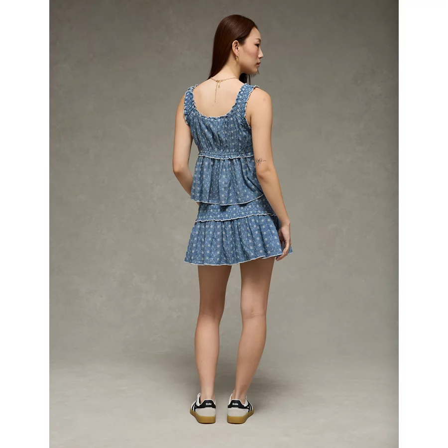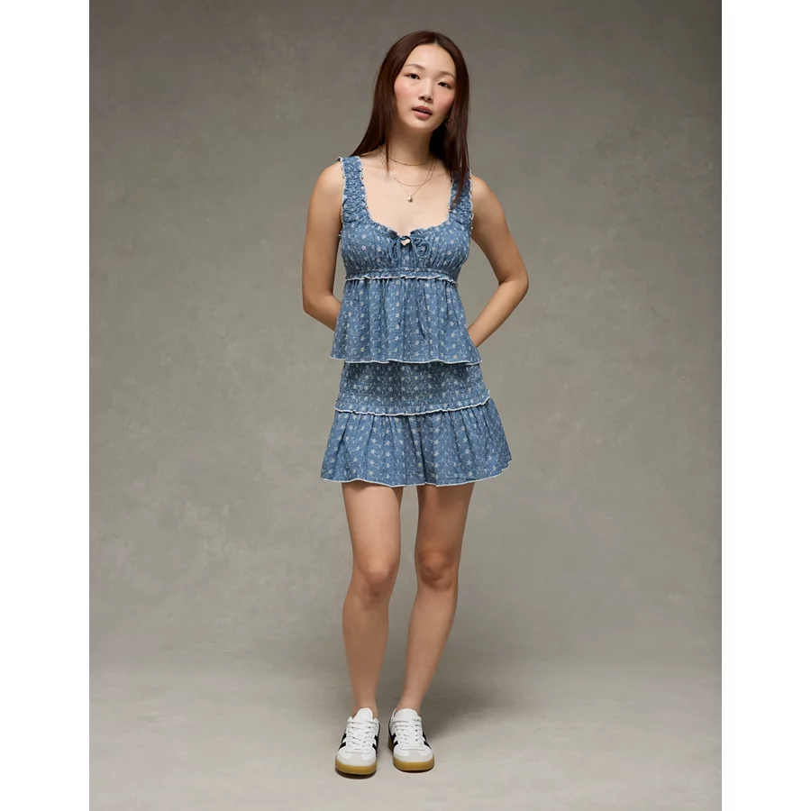 AE Asymmetrical Ruffle Maxi Slip Dress – Light Blue