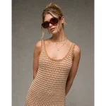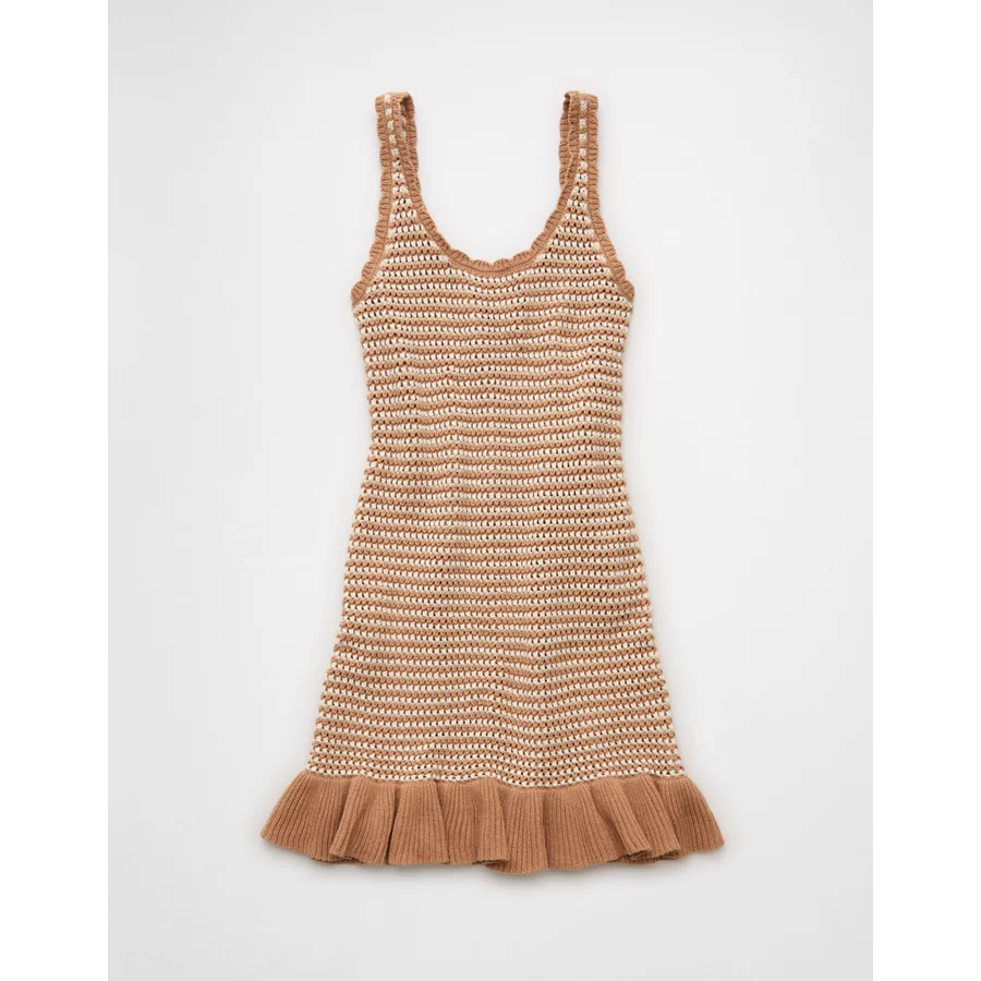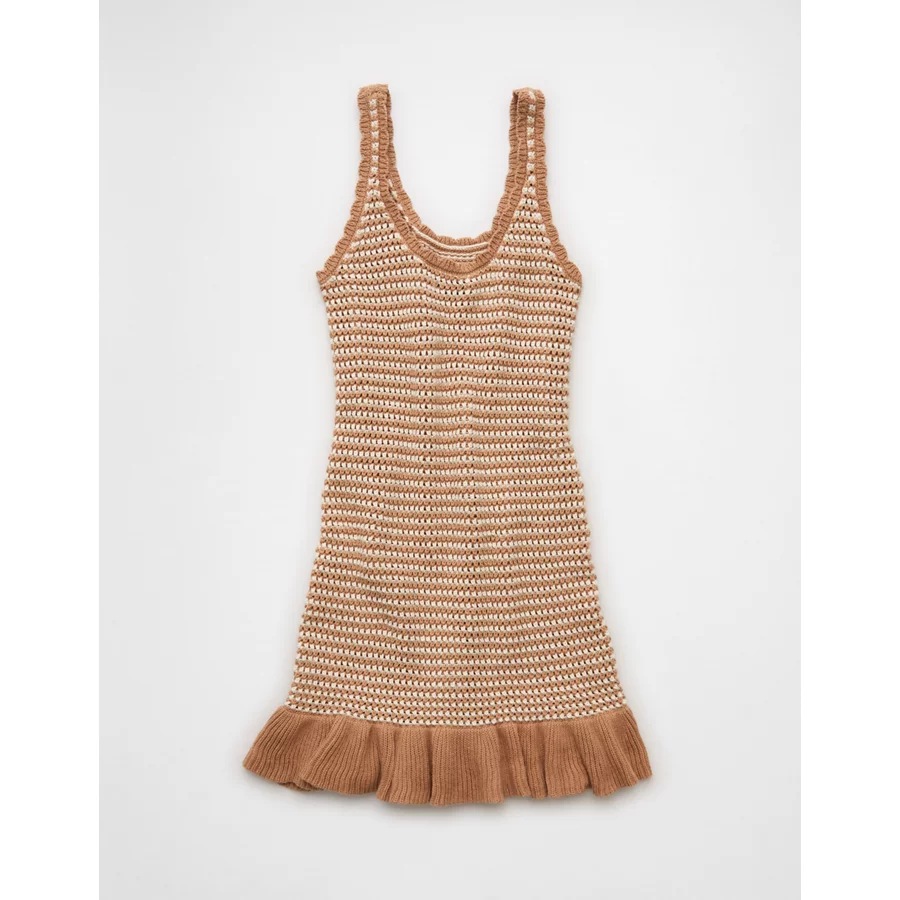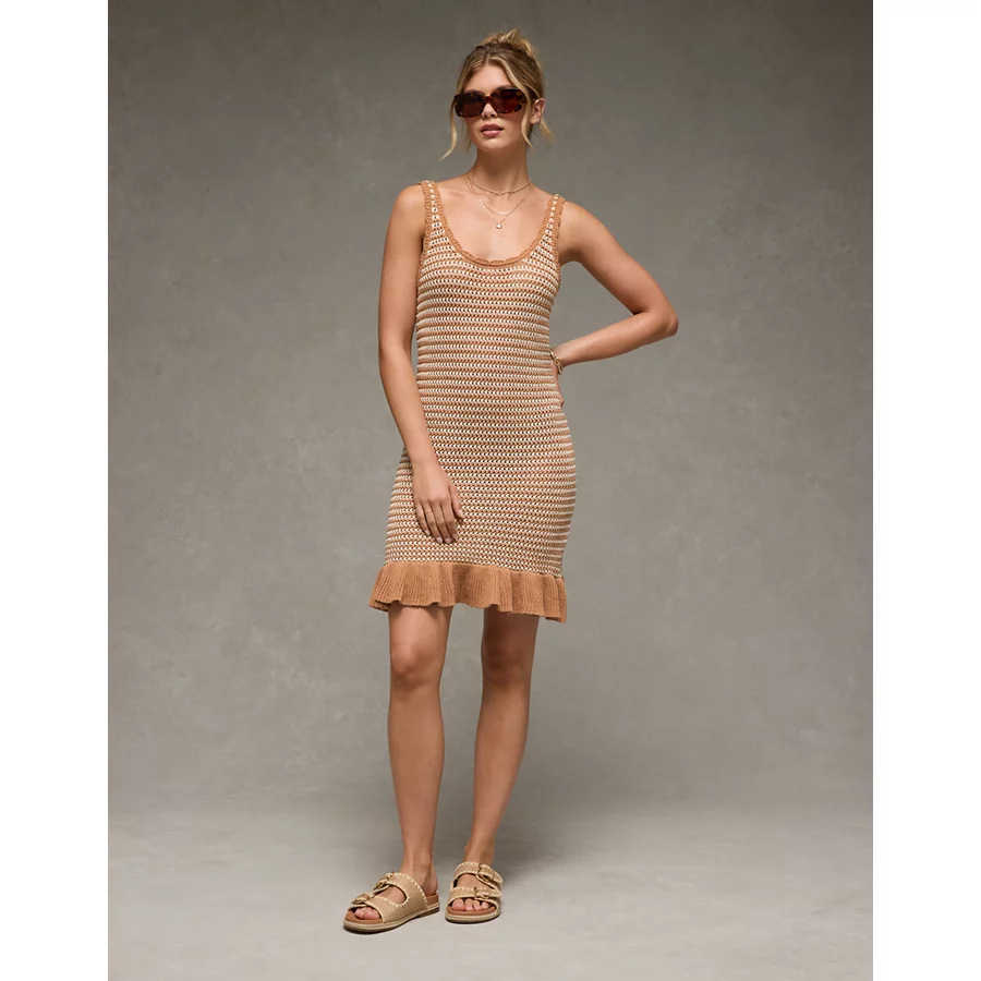 AE Ruffle Hem Striped Mini Sweater Dress – Cream