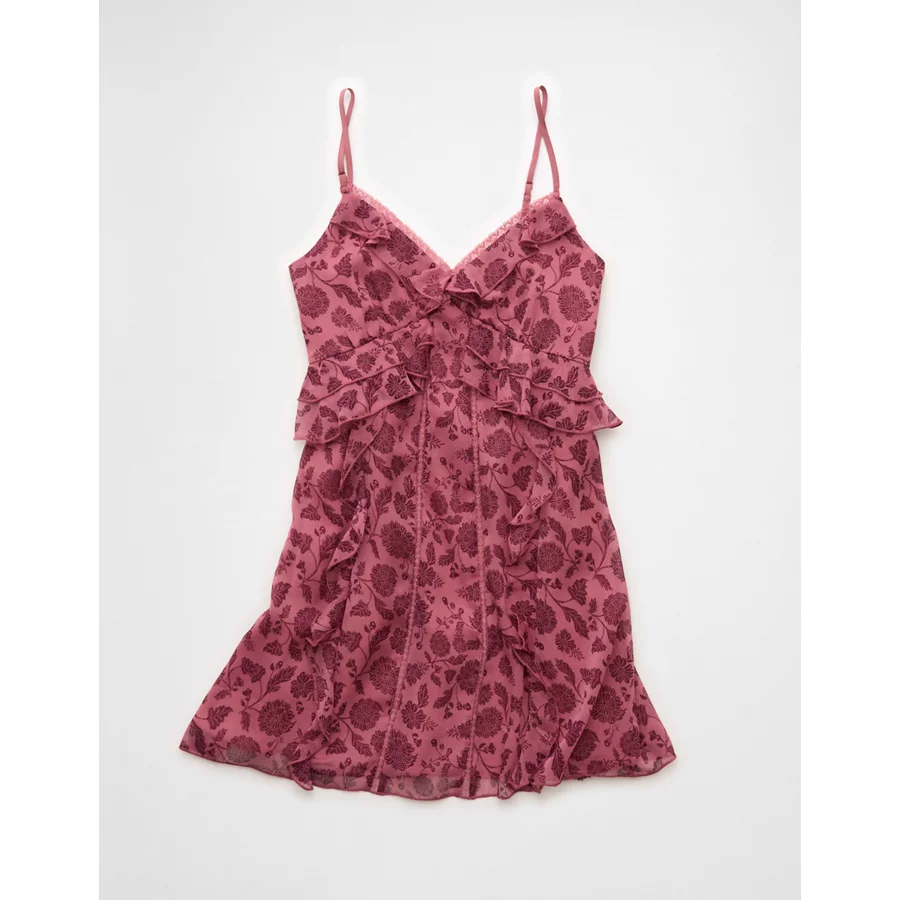 AE Ruffle Hem Striped Mini Sweater Dress - Cream