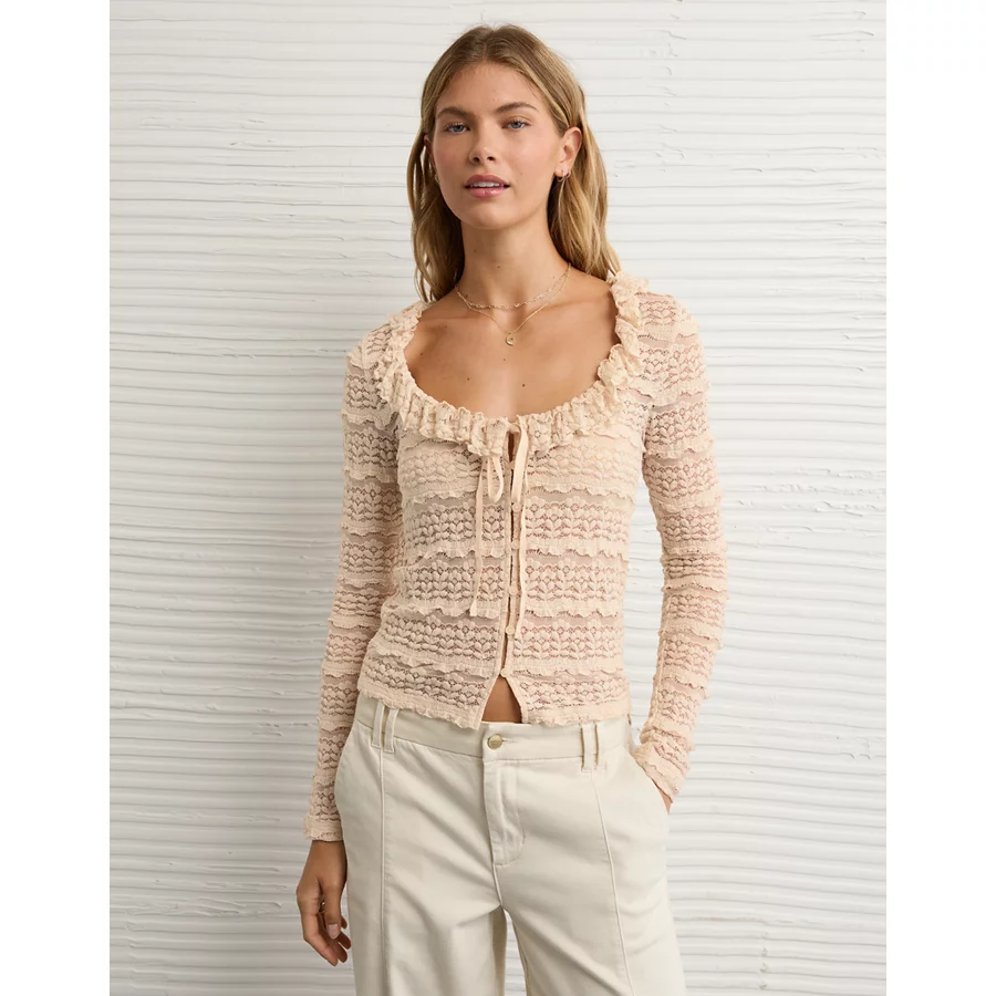 AE Ruffle Neck T-Shirt – Ballet Pink