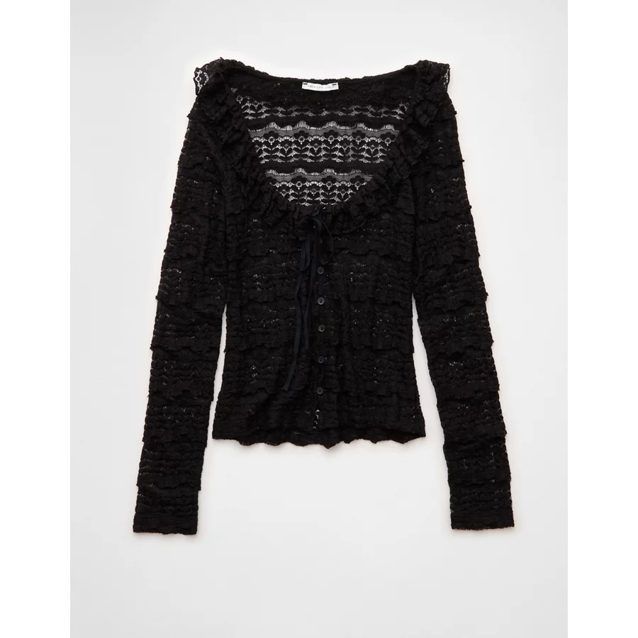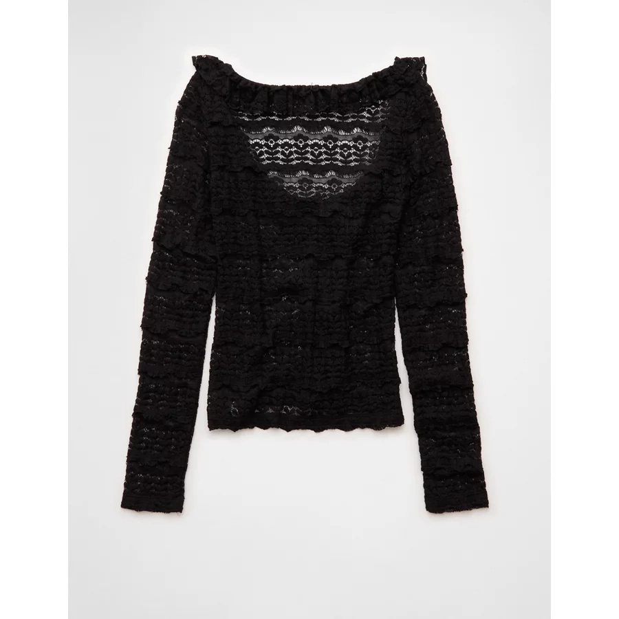 AE Ruffle Off-The-Shoulder Sweater - Cream
