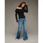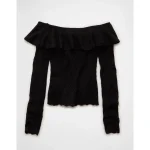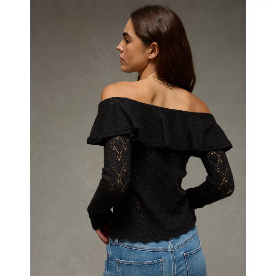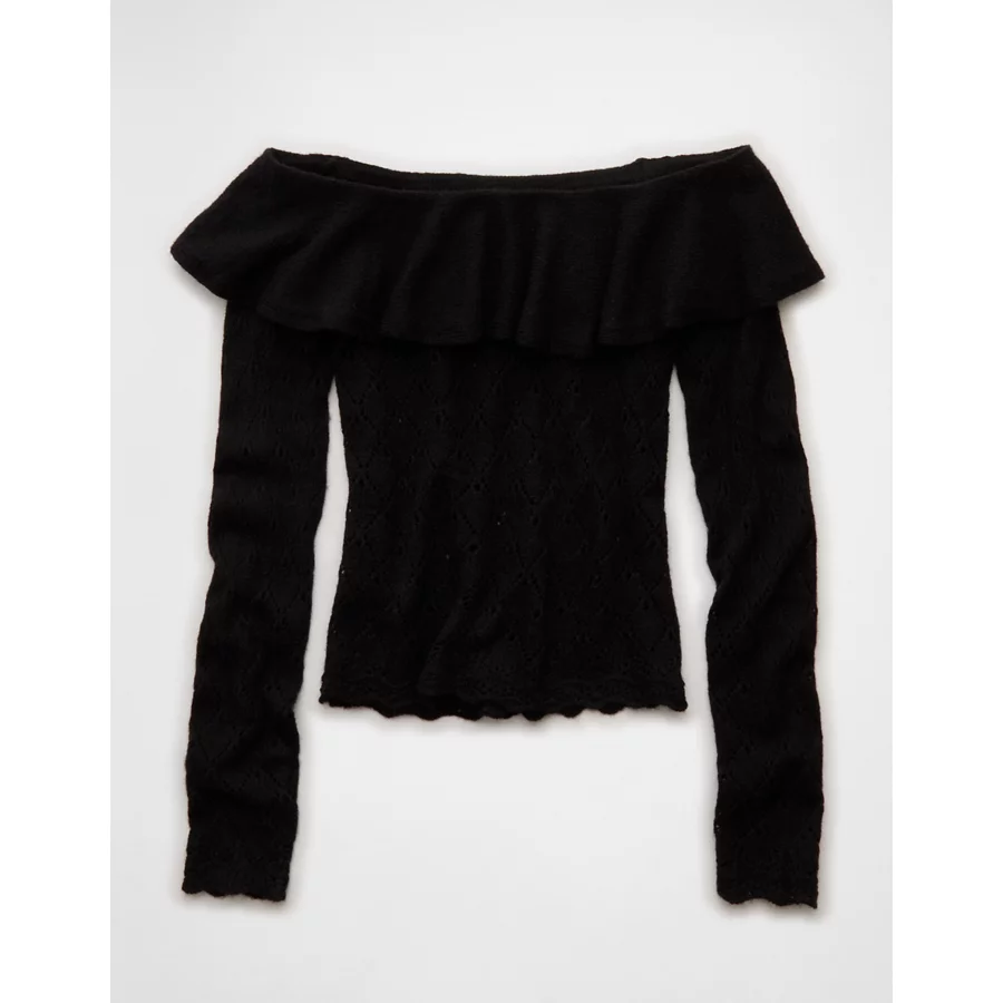 AE Ruffle Off-The-Shoulder Sweater – Bold Black