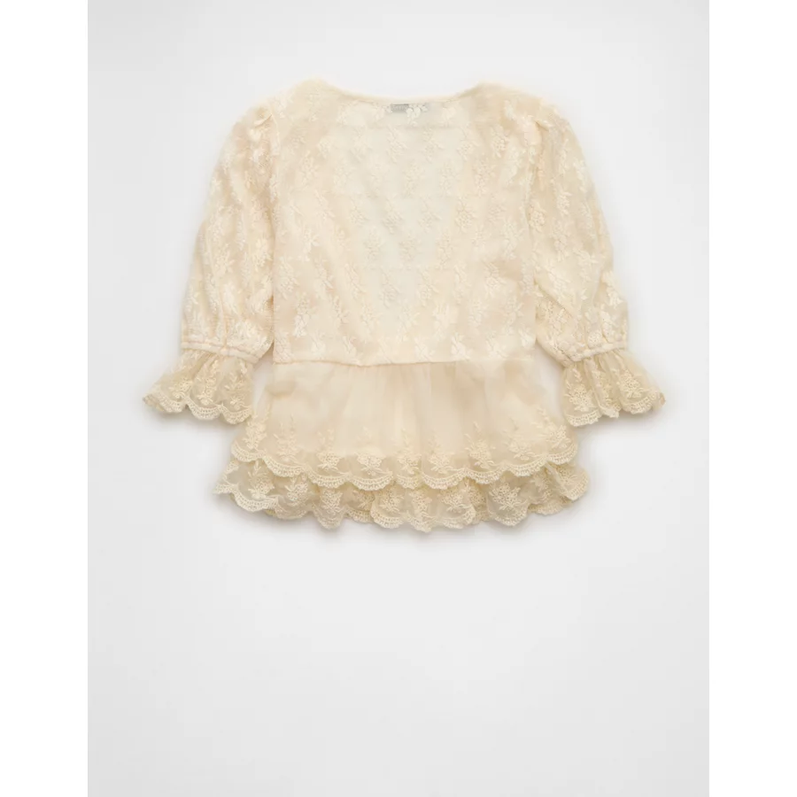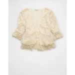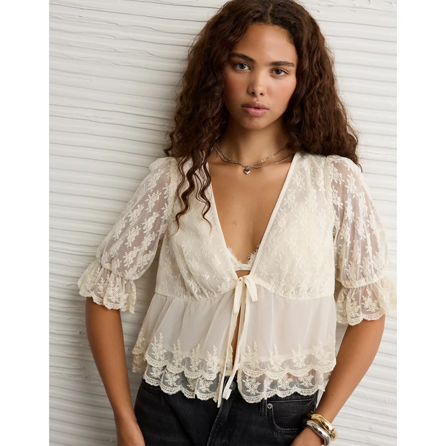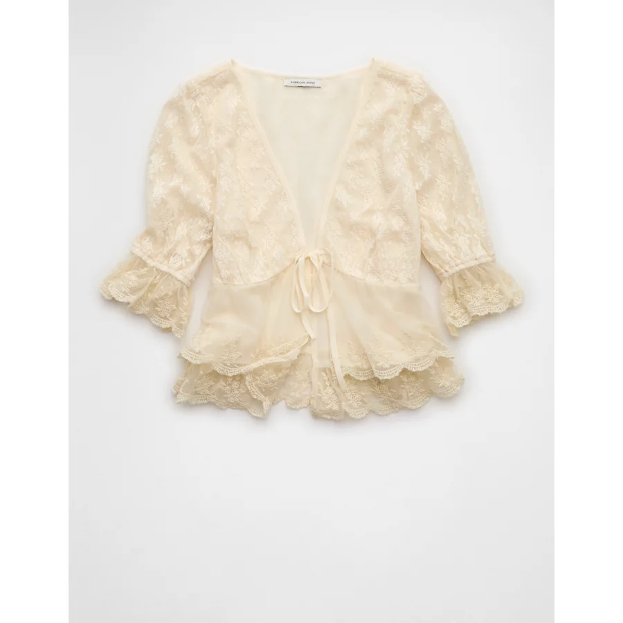 AE Ruffled Tie-Front Blouse – Cream
