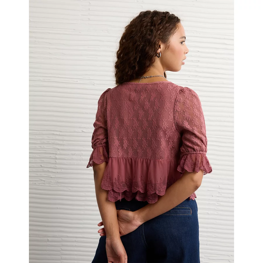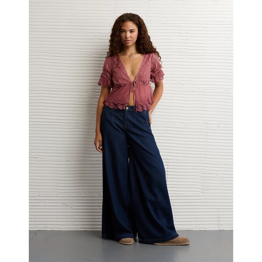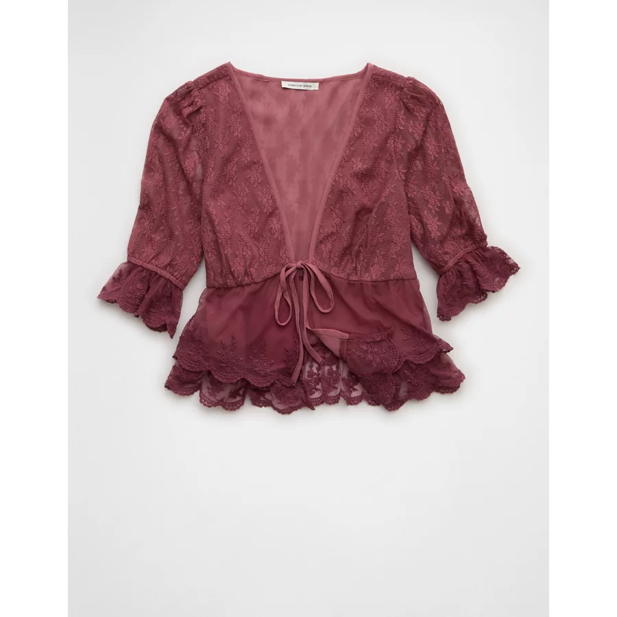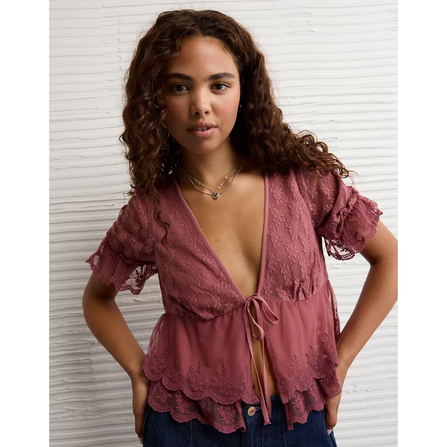 AE Ruffled Tie-Front Blouse – Earthen