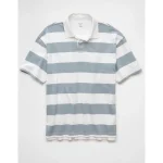 AE 24/7 Club Logo Striped Polo Shirt – Gray