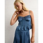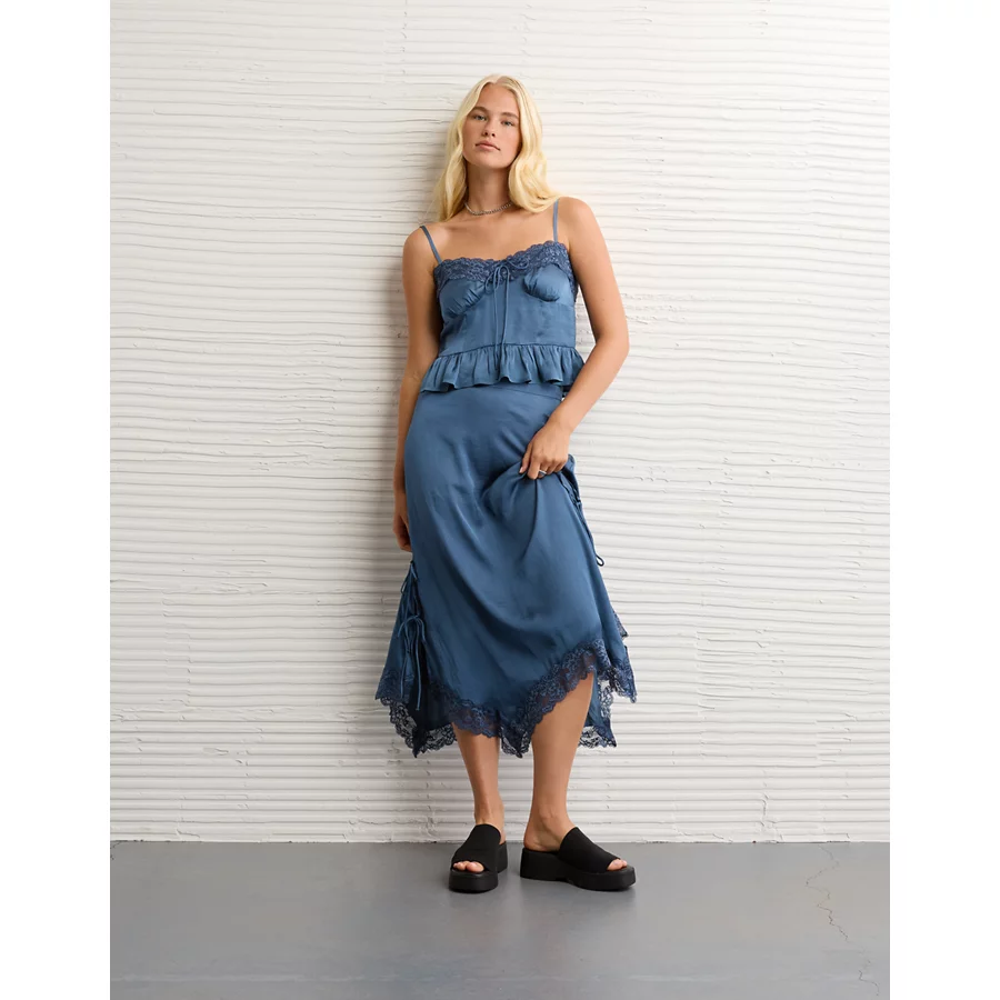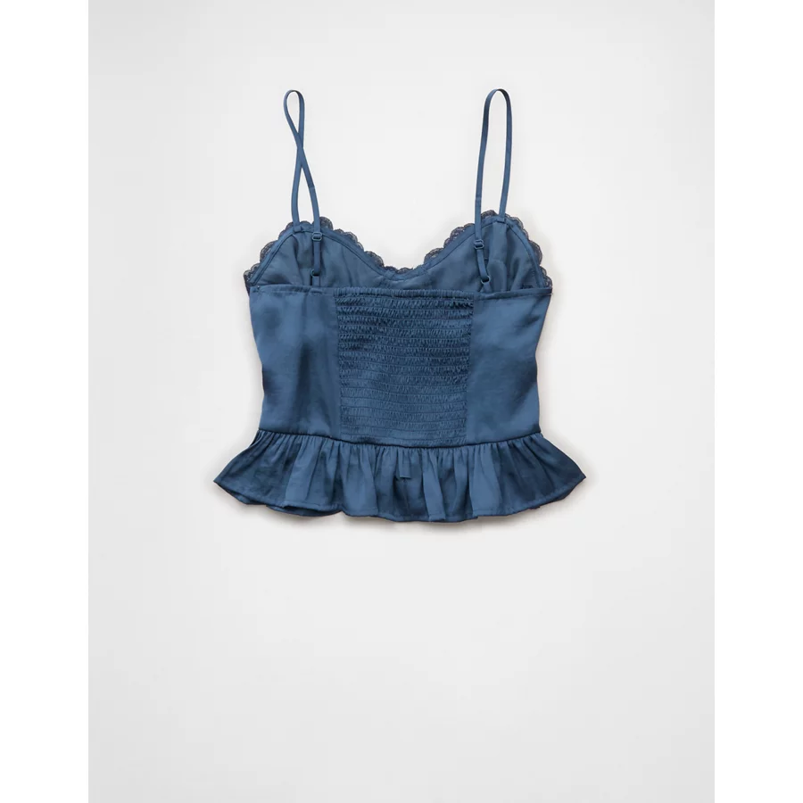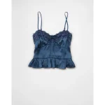AE Satin Peplum Tank Top – Navy