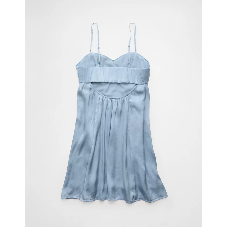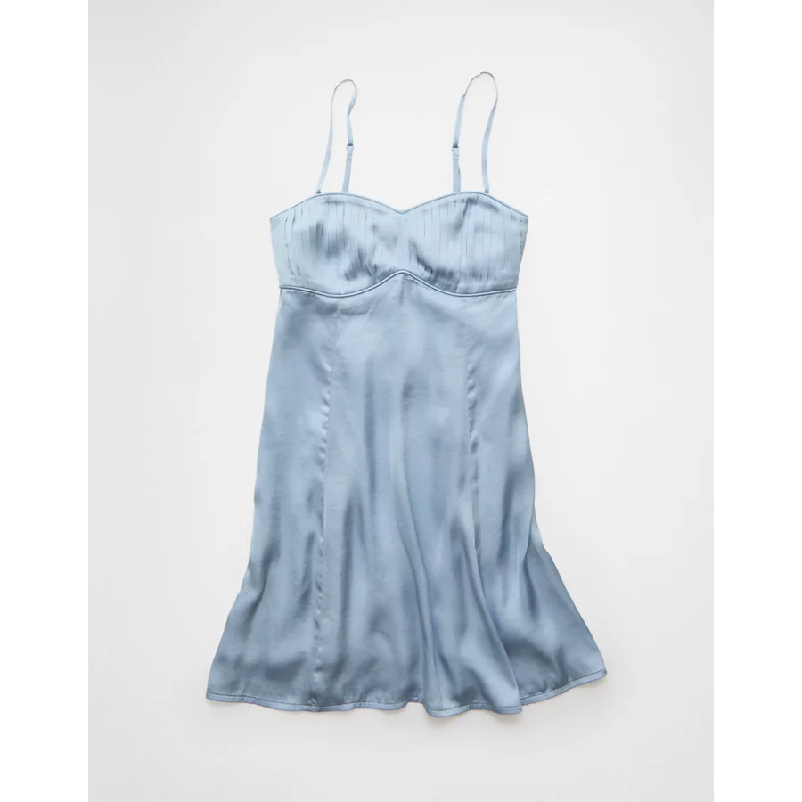 AE Satin Sweetheart Mini Slip Dress – Light Blue