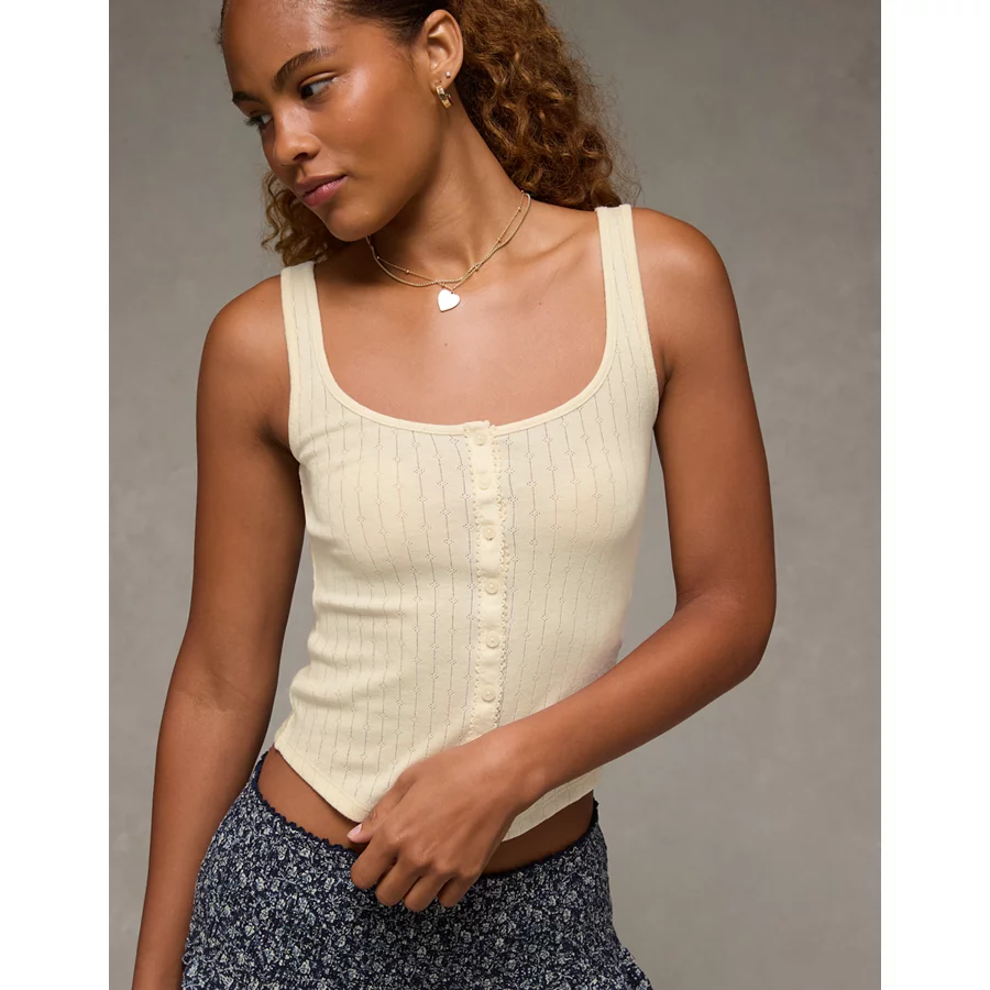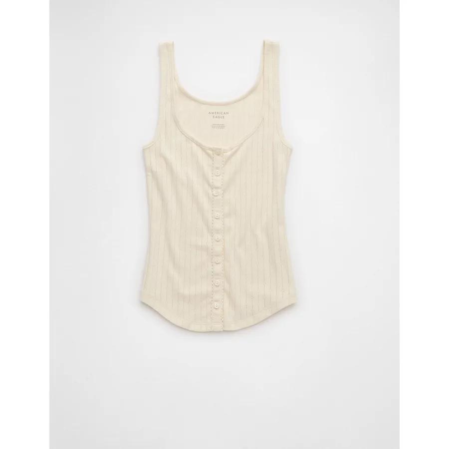 AE Scoop Neck Pointelle Tank Top – Cream