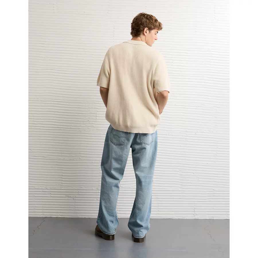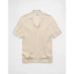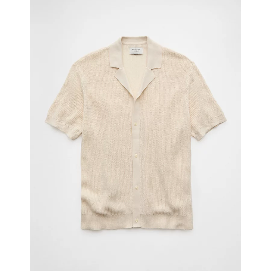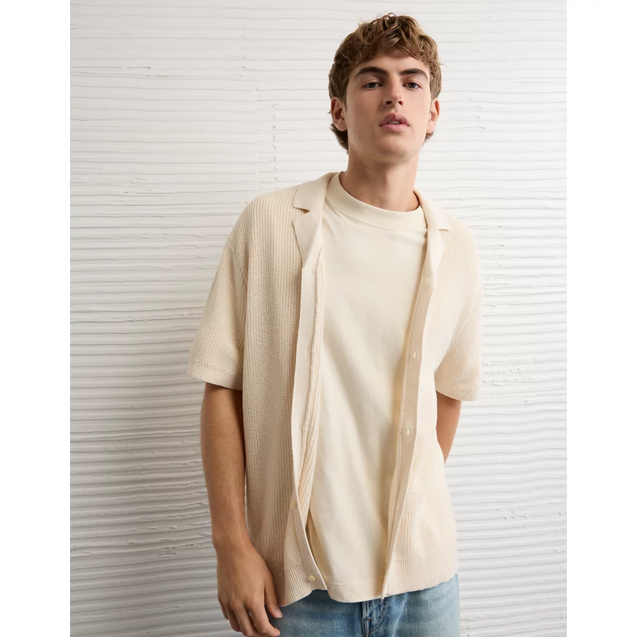AE Shaker Button-Up Sweater Polo Shirt – Cream
