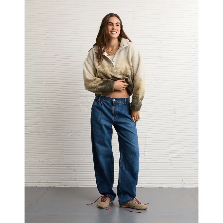 AE Sherpa Fleece Graphic Henley Sweatshirt - Navy