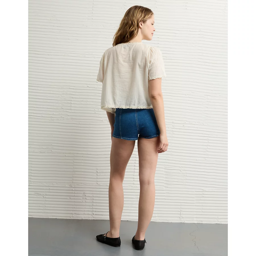 AE Short-Sleeve High Neck Tie Front Shirt – Cream