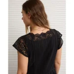 AE Short Sleeve Sheer Blouse - Cream