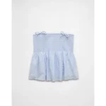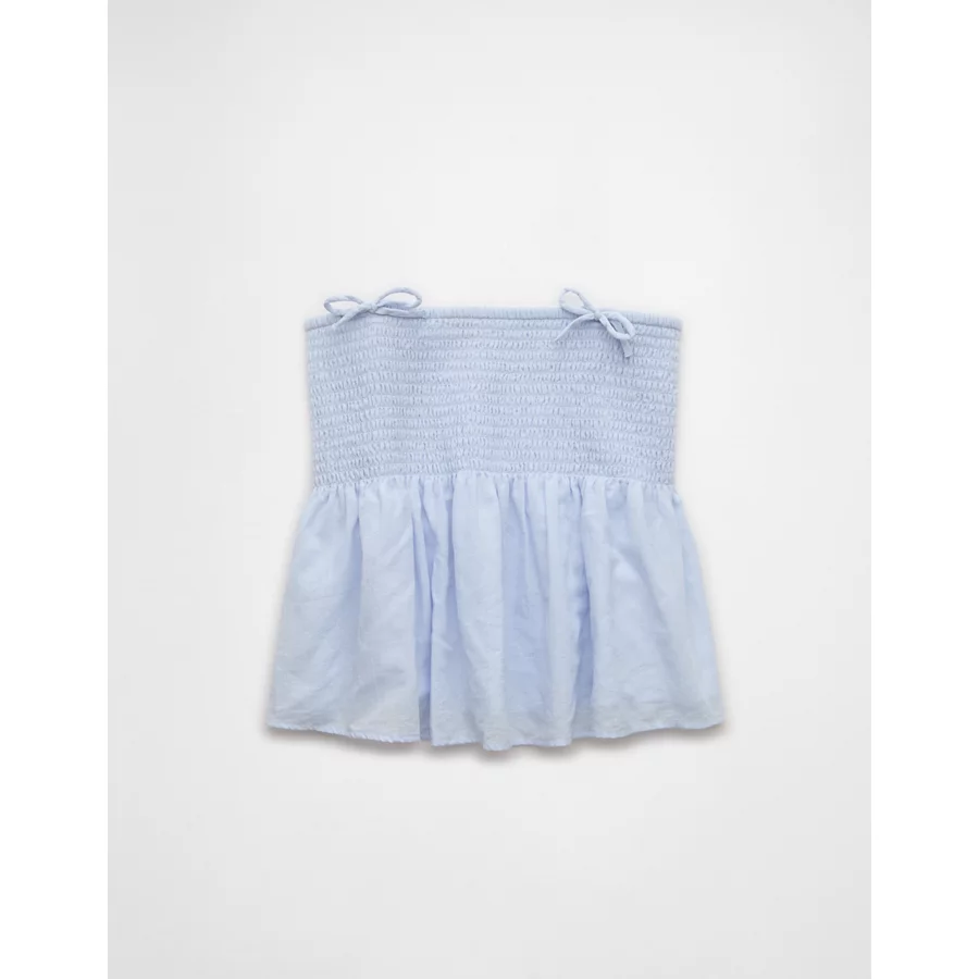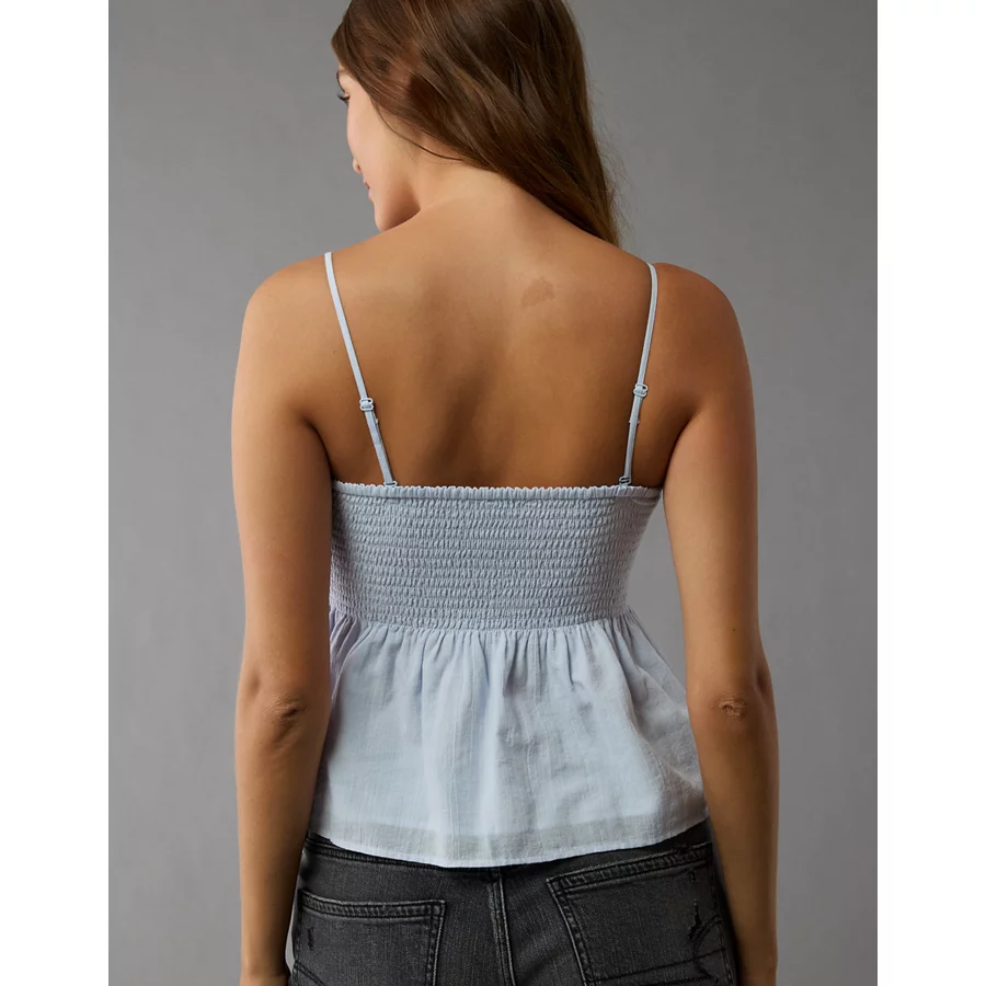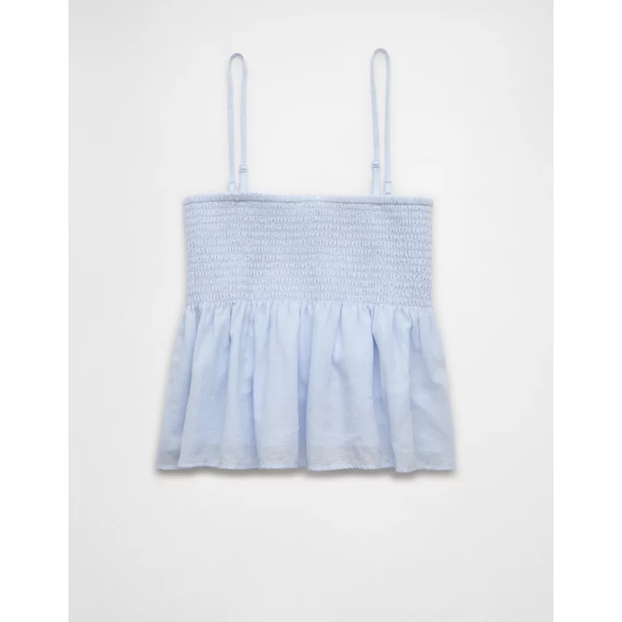 AE Smocked Babydoll Bow Tank Top – Light Blue