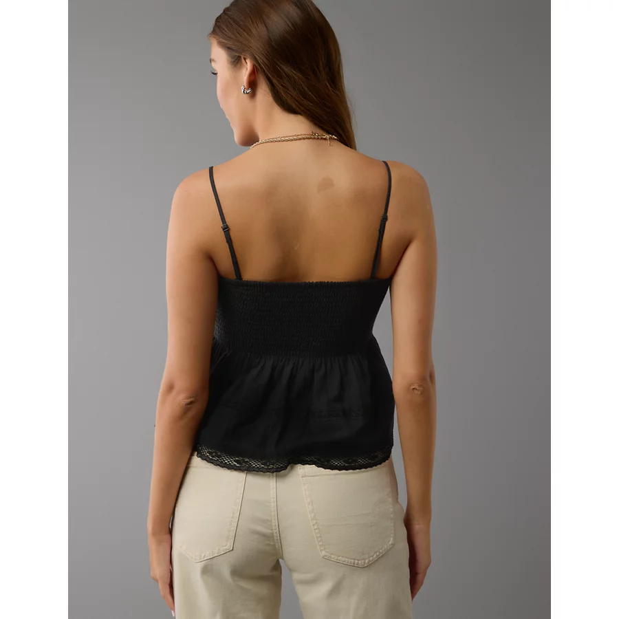 AE Smocked Babydoll Bow Tank Top - Light Blue