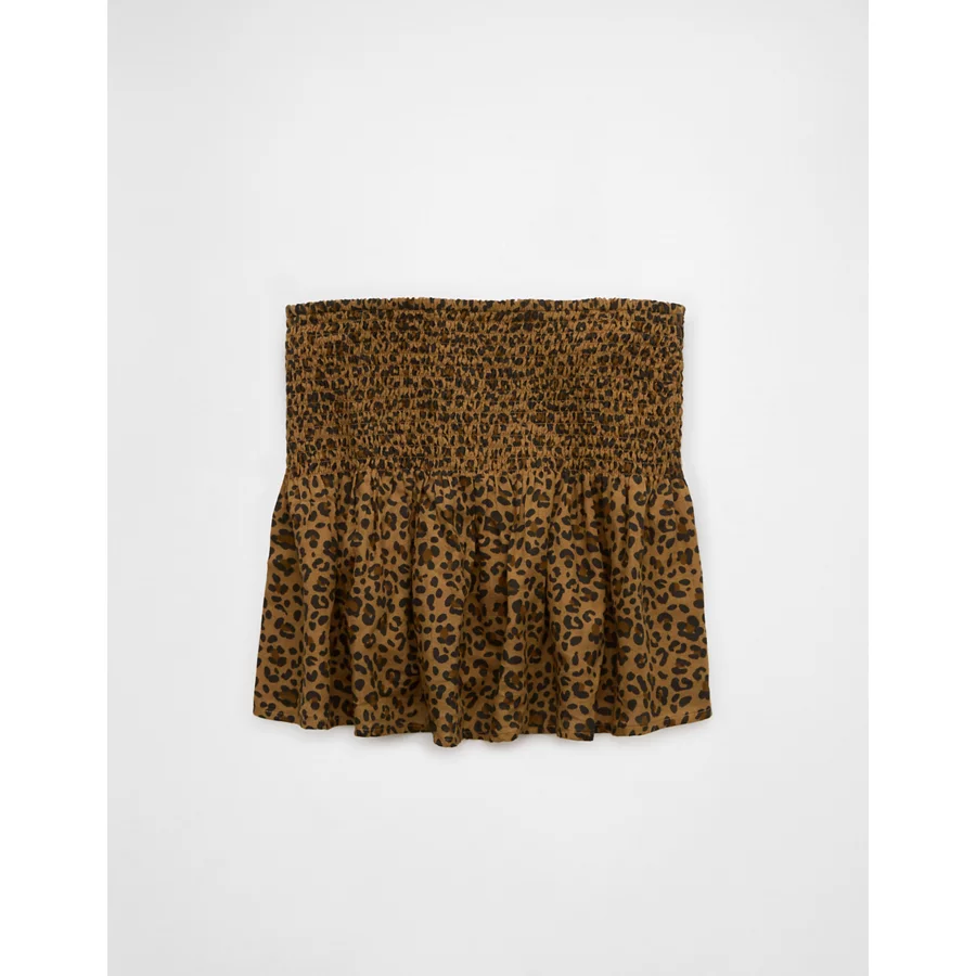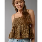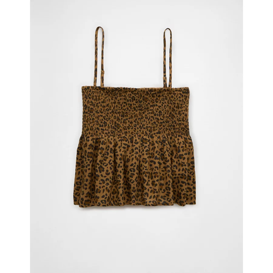 AE Smocked Babydoll Leopard Cami Tank Top – Brown