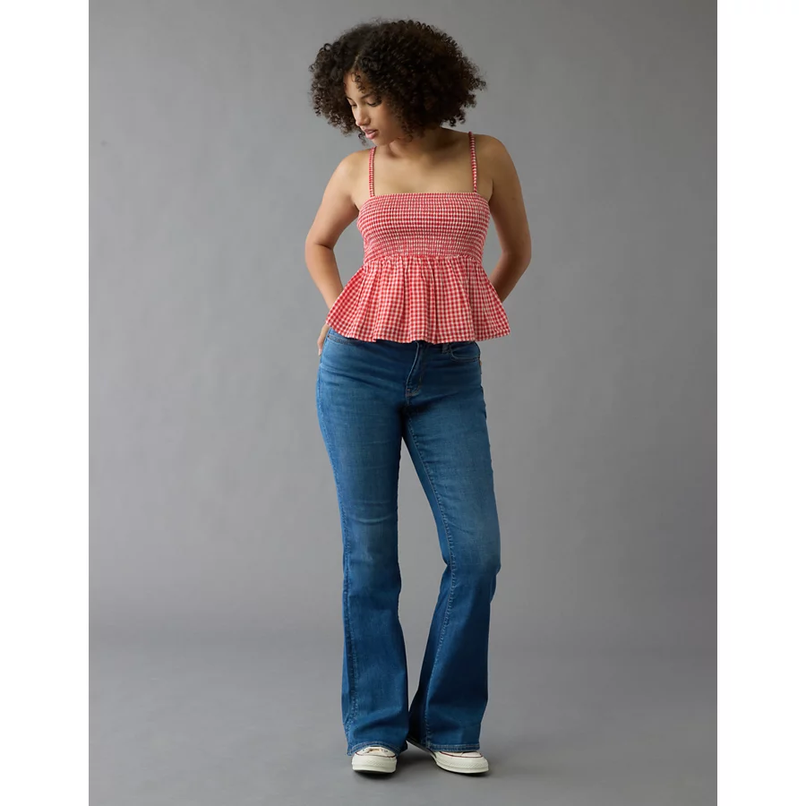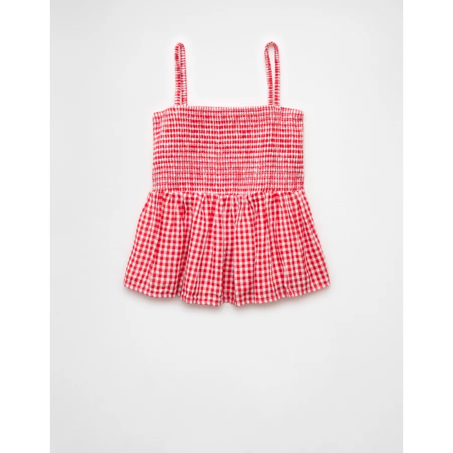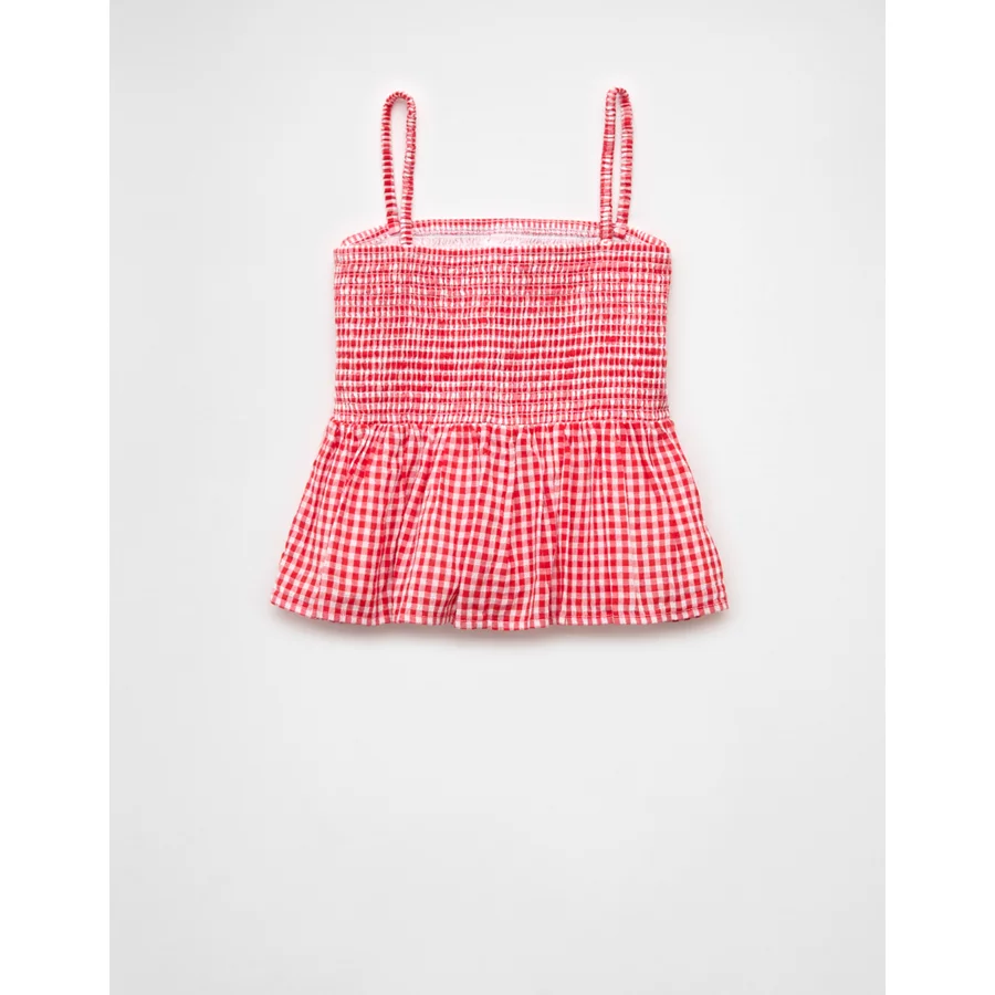 AE Smocked Gingham Babydoll Cami – Red