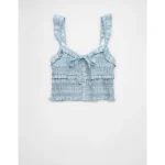 AE Smocked Ruffle Tank Top – Light Blue