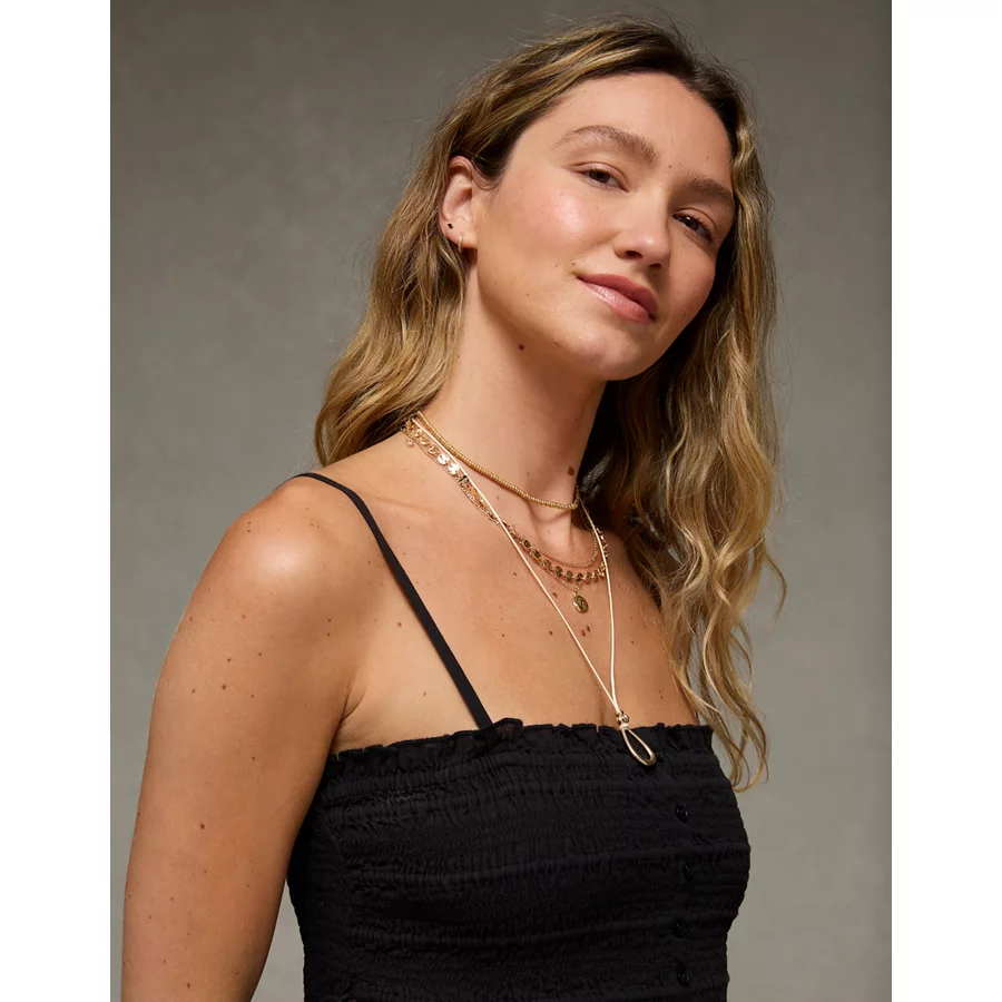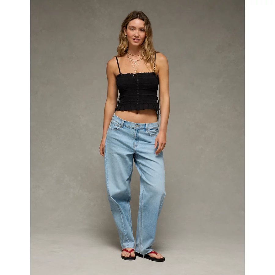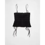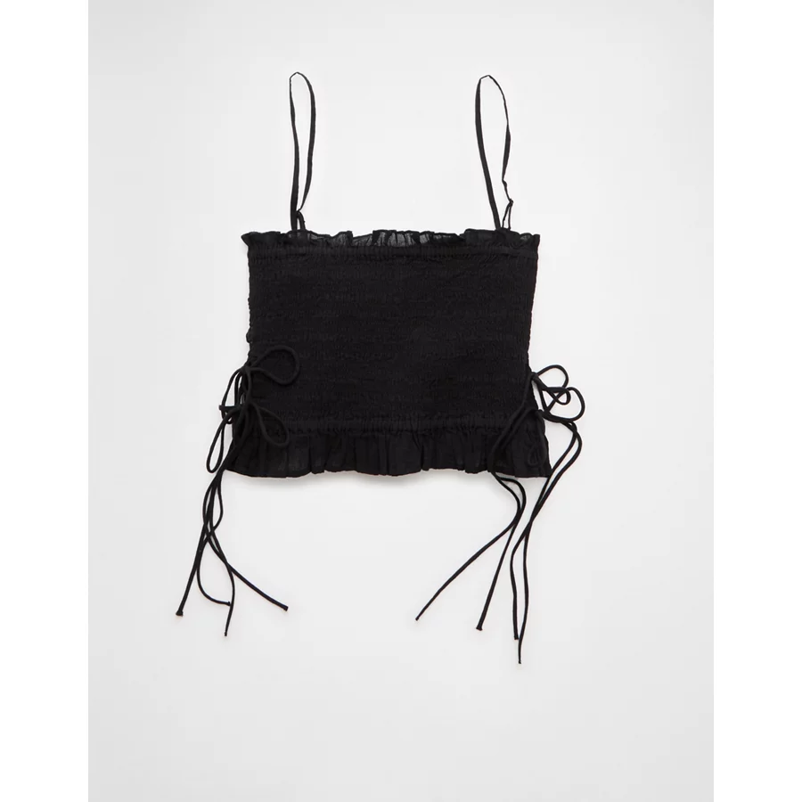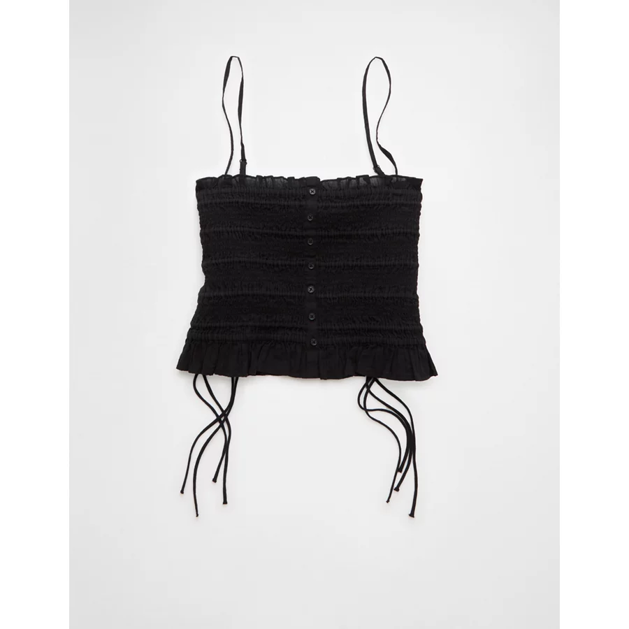 AE Smocked Tie Side Button-Up Tank Top – Black