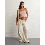 AE Smocked Tie Side Button-Up Tank Top – Light Pink