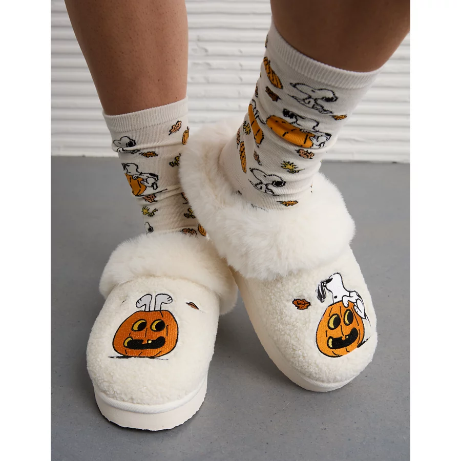 AE Snoopy Pumpkin Scuff Slipper – Ivory