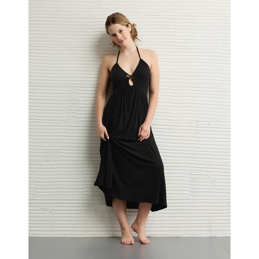 AE Soft & Sexy Keyhole Halter Midi Dress – Black