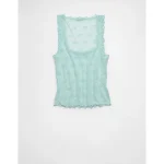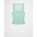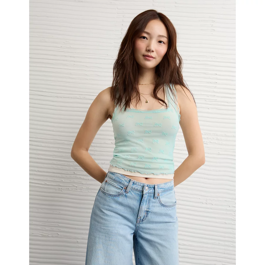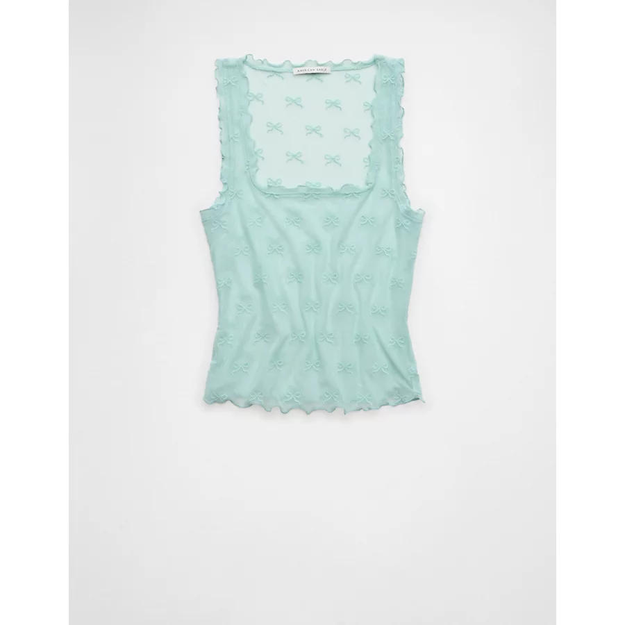 AE Square Neck Bow Mesh Tank Top – Light Blue