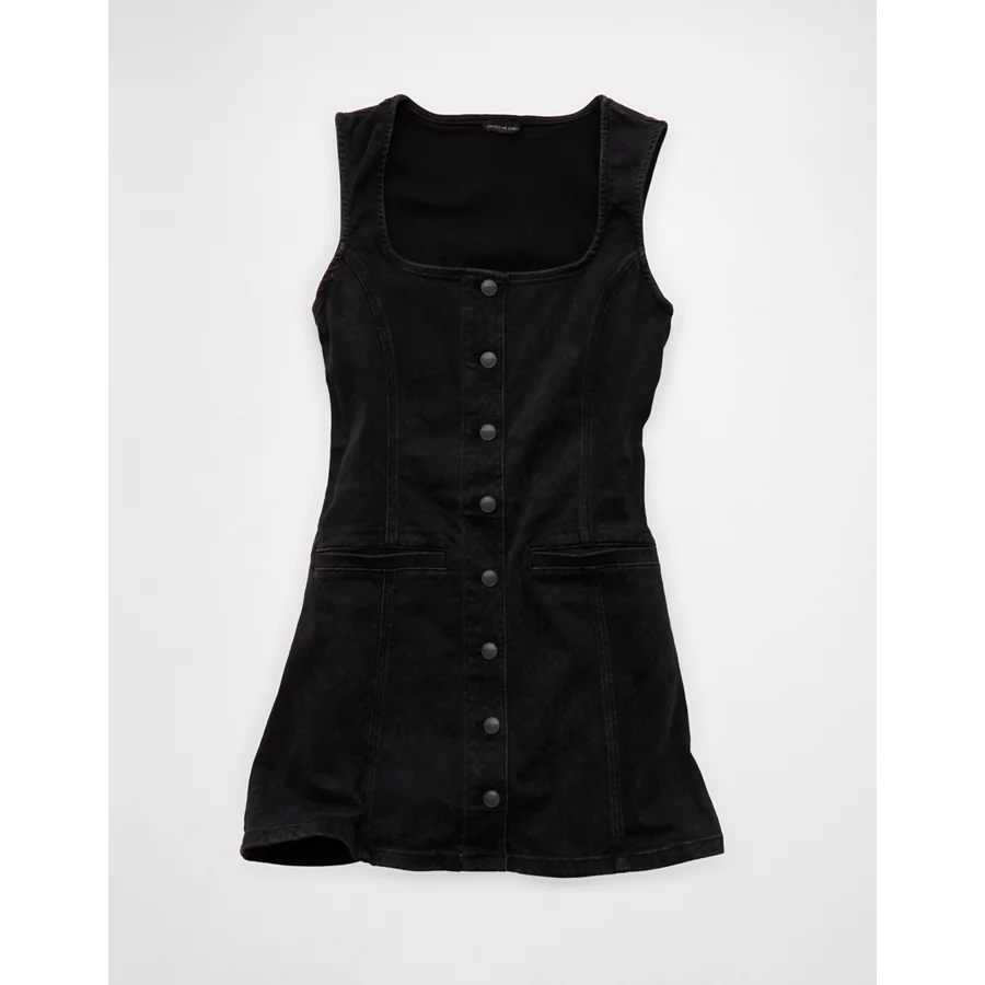 AE Square Neck Denim Mini Shift Dress - Light Wash