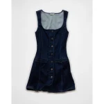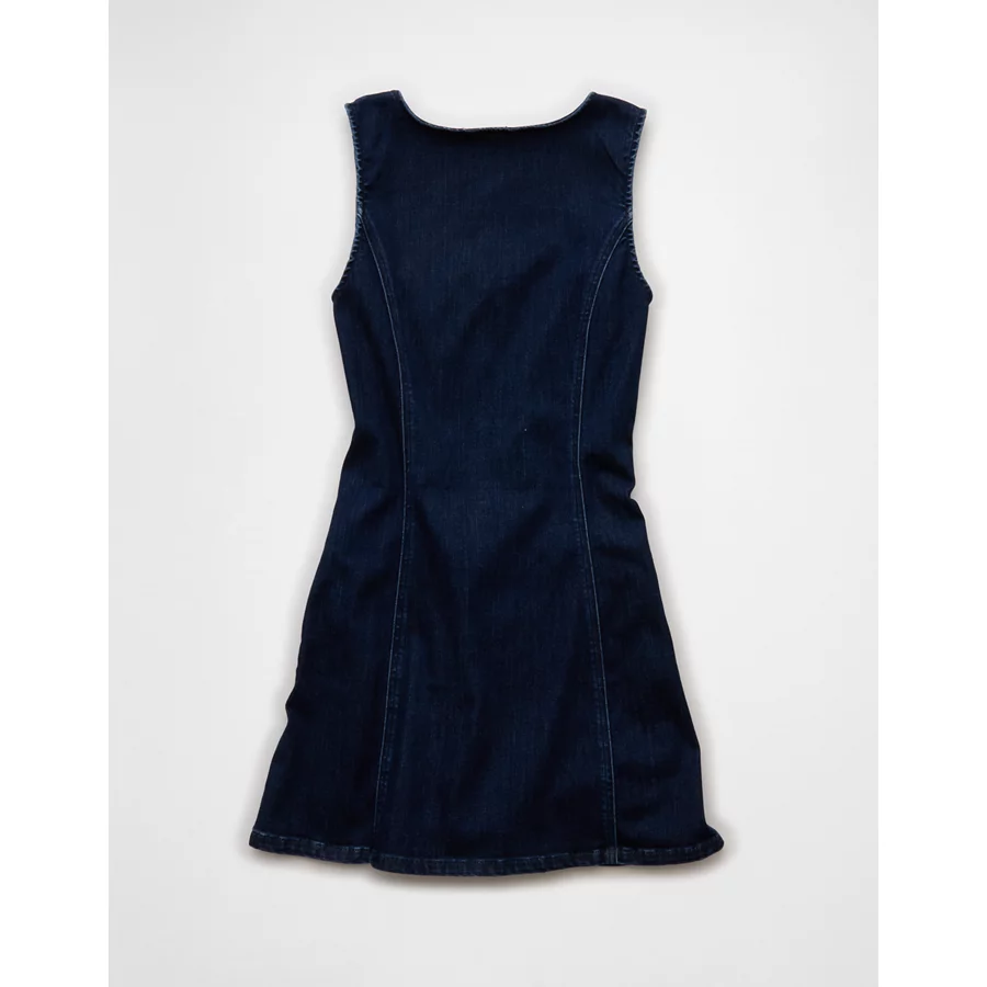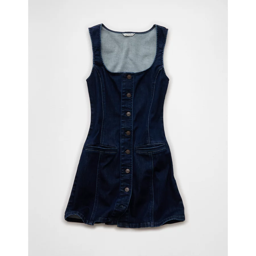 AE Square Neck Button-Up Denim Vest - Dark Wash