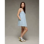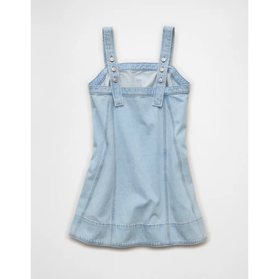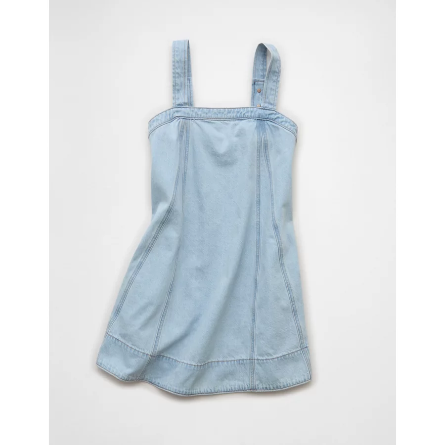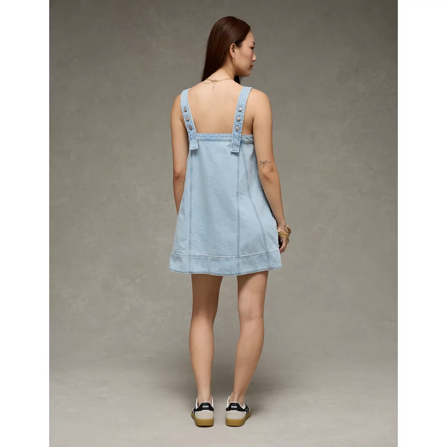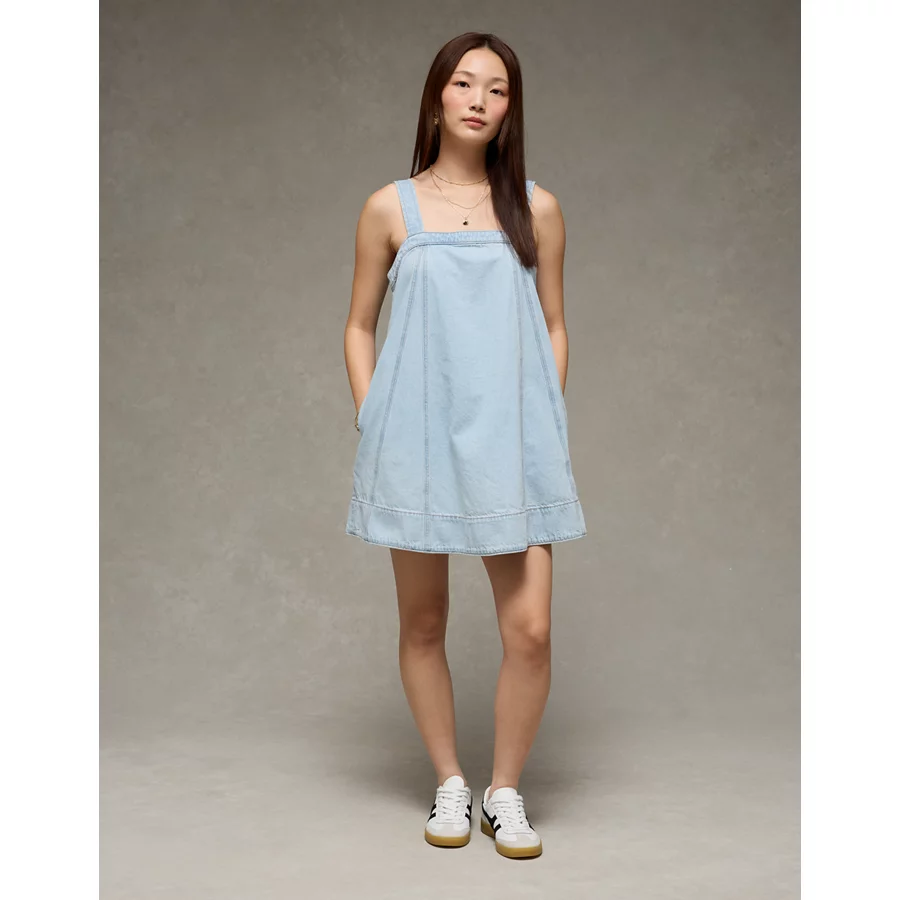 AE Square Neck Denim Mini Shift Dress – Light Wash