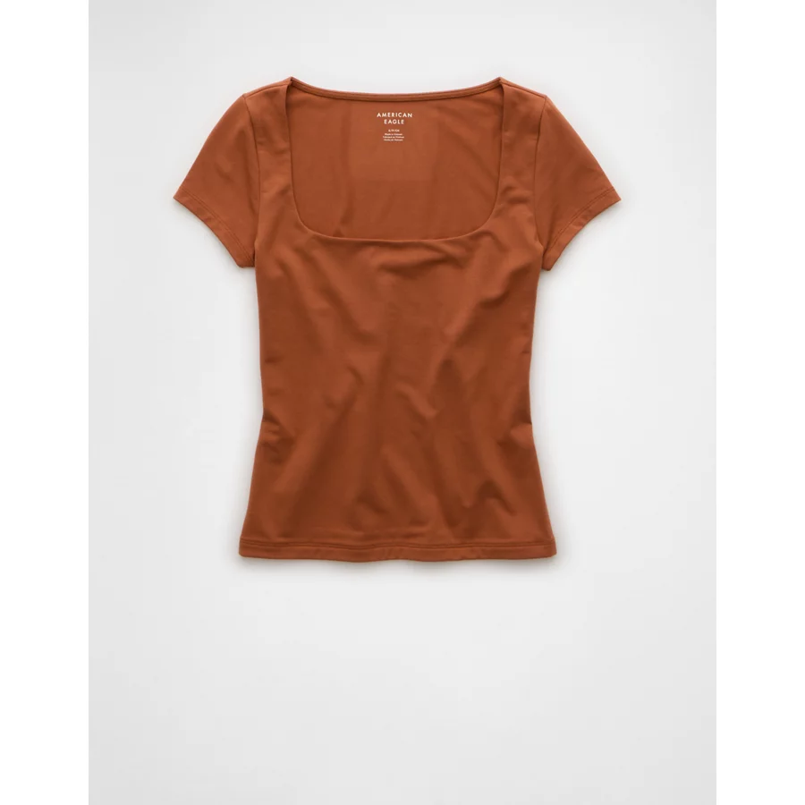 AE Square Neck Hey Baby Tee – Brown