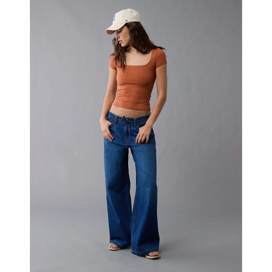 AE 8″ Dreamy Drape Stretch Low-Rise Baggy Jort – Medium Bright Indigo