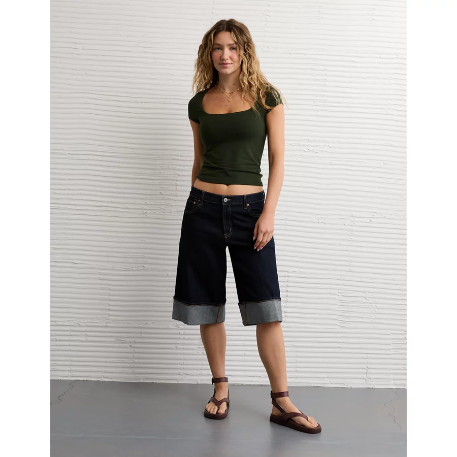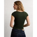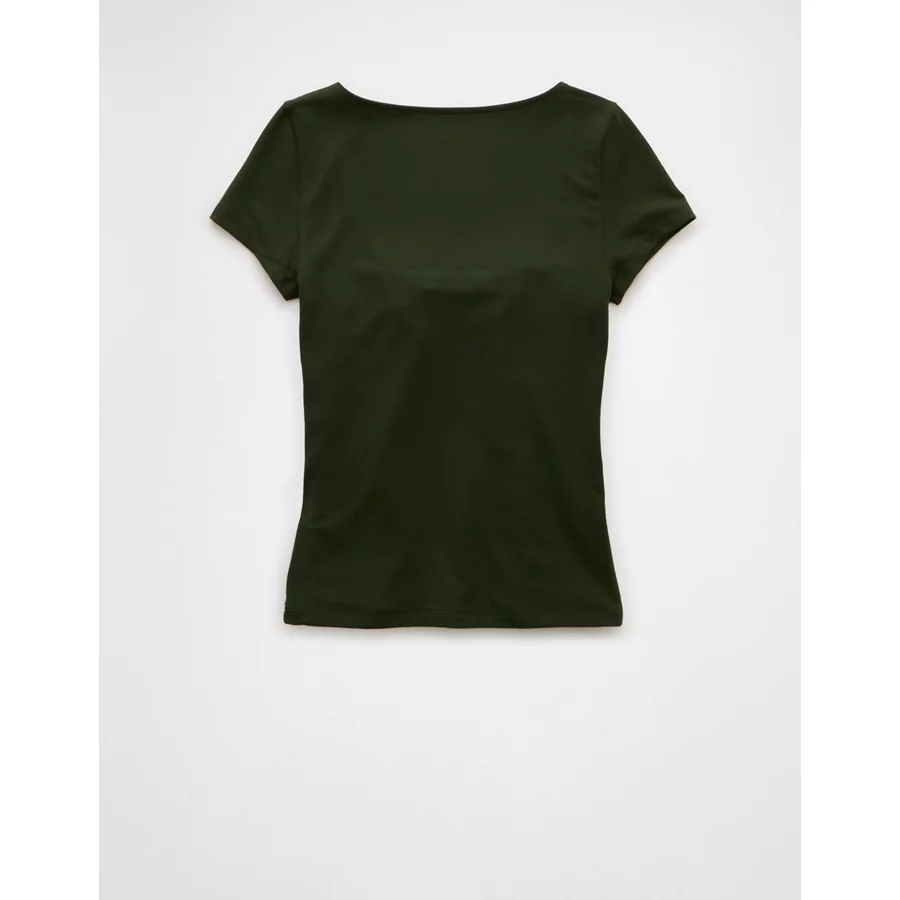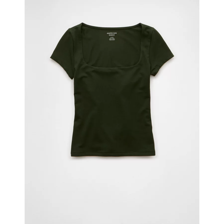 AE Square Neck Hey Baby Tee – Crew Green