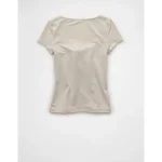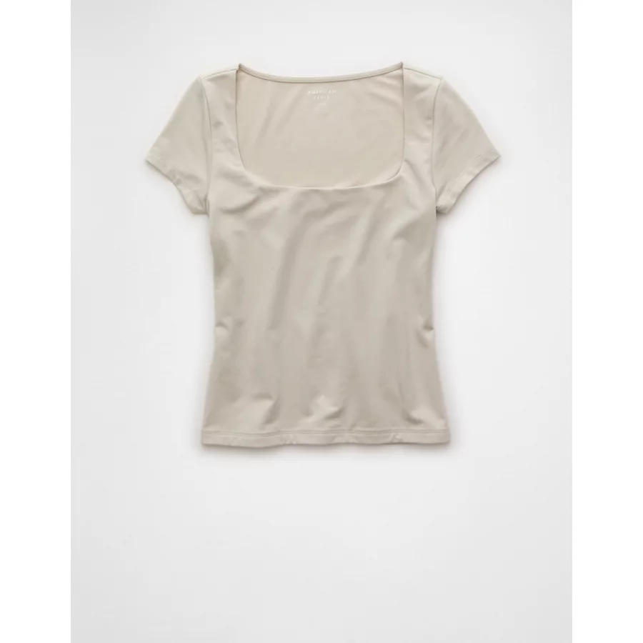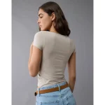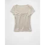 AE Square Neck Hey Baby Tee – Grey
