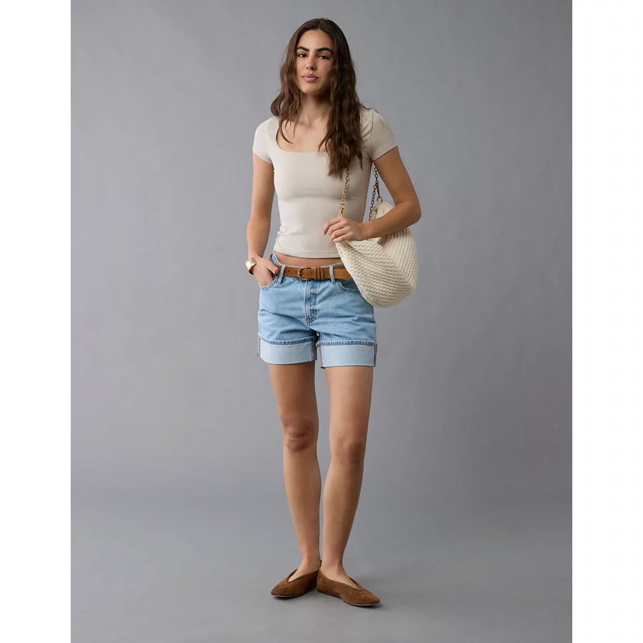 AE 8″ Dreamy Drape Stretch Low-Rise Baggy Jort – Medium Bright Indigo