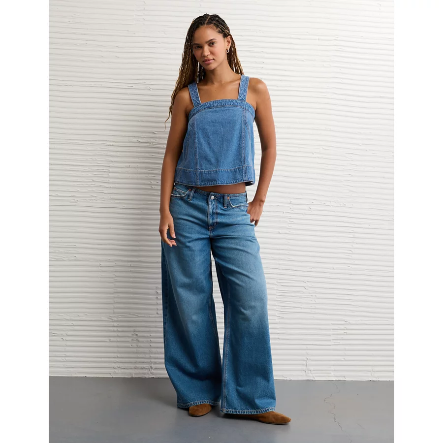 AE Square Neck Pieced Denim Tank Top – Medium Wash