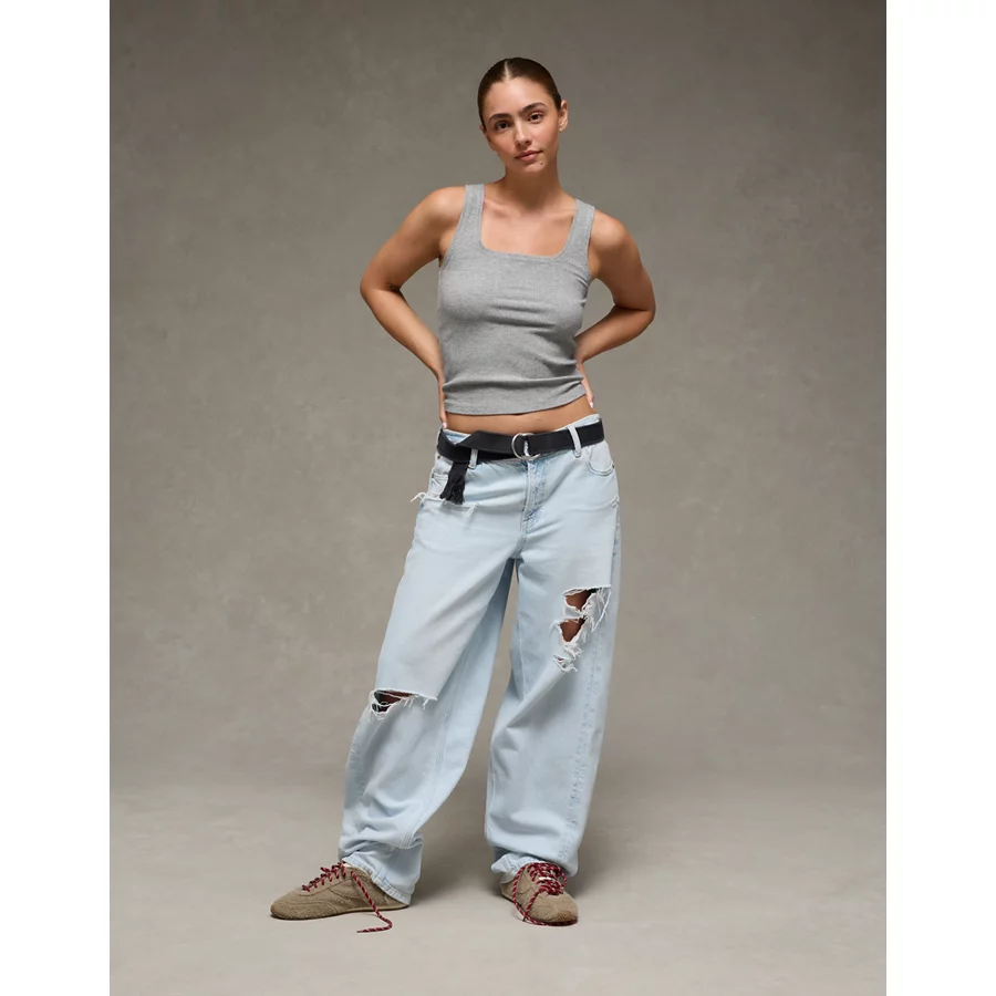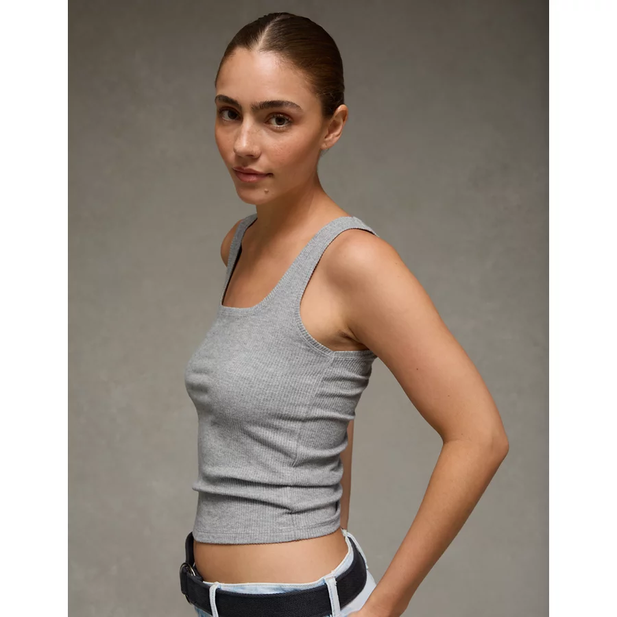 AE Square Neck Plush Tank Top – Medium Heather Gray