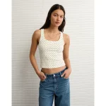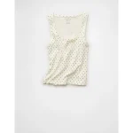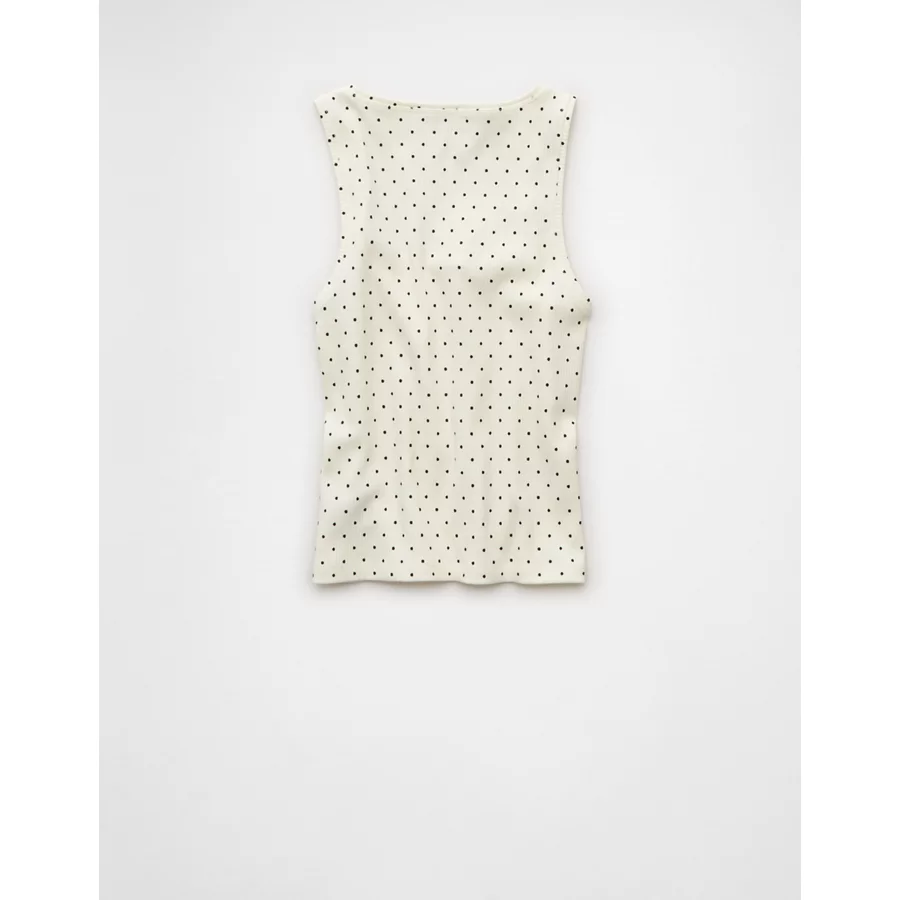 AE Square Neck Polka Dot Tank Top – White