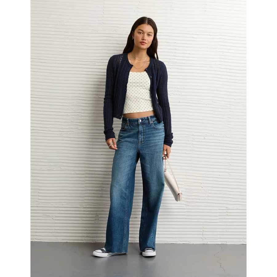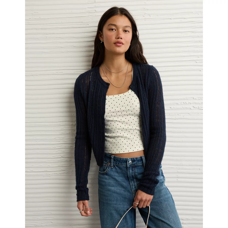 AE Square Neck Polka Dot Tank Top - True Black