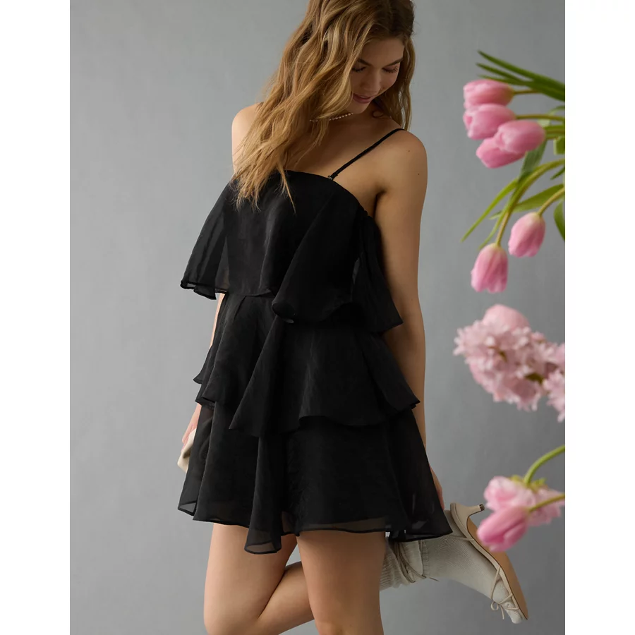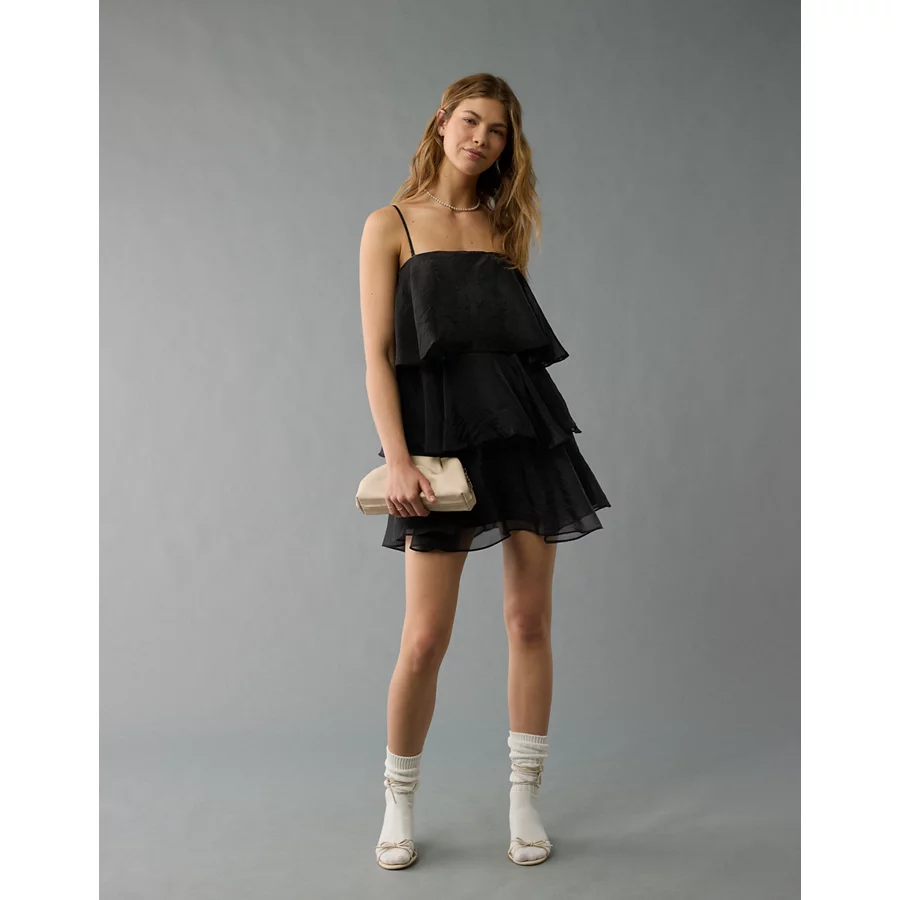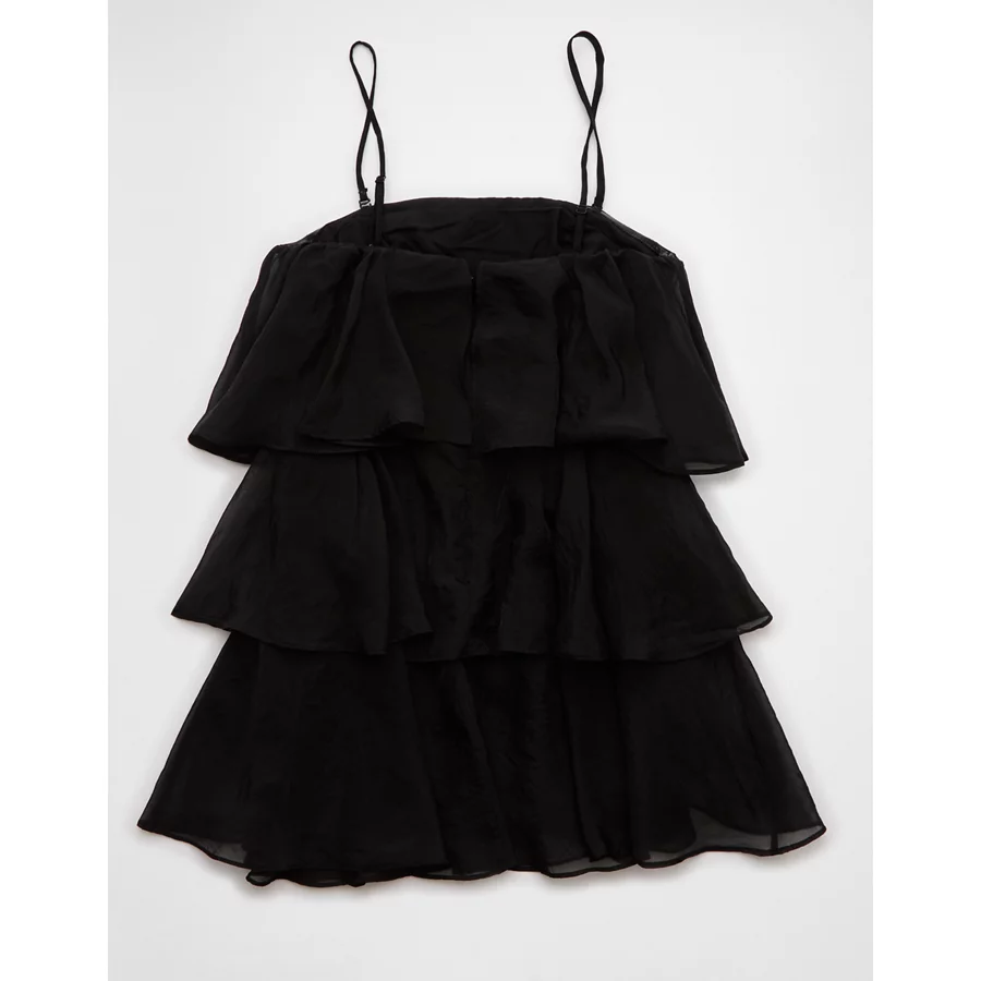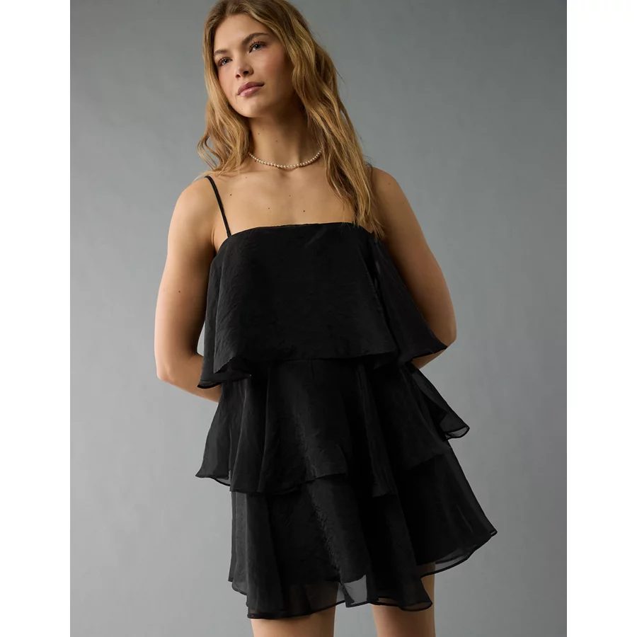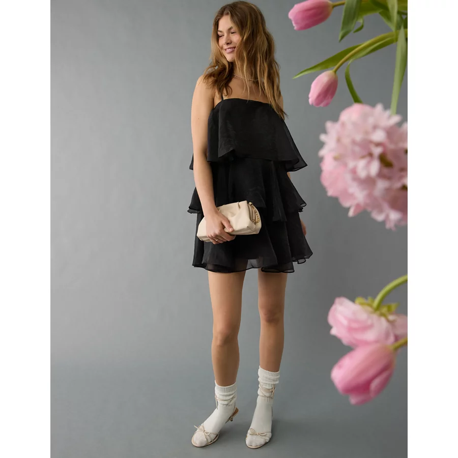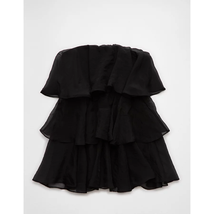 AE Strapless Ruffle Tiered Mini Dress – Black