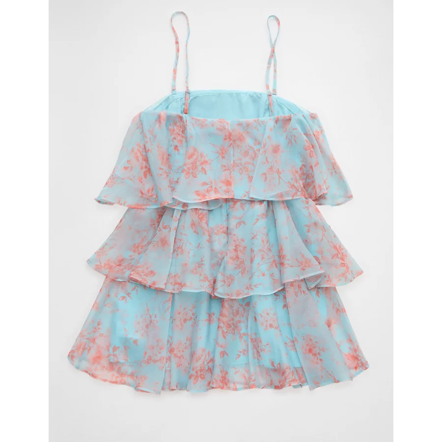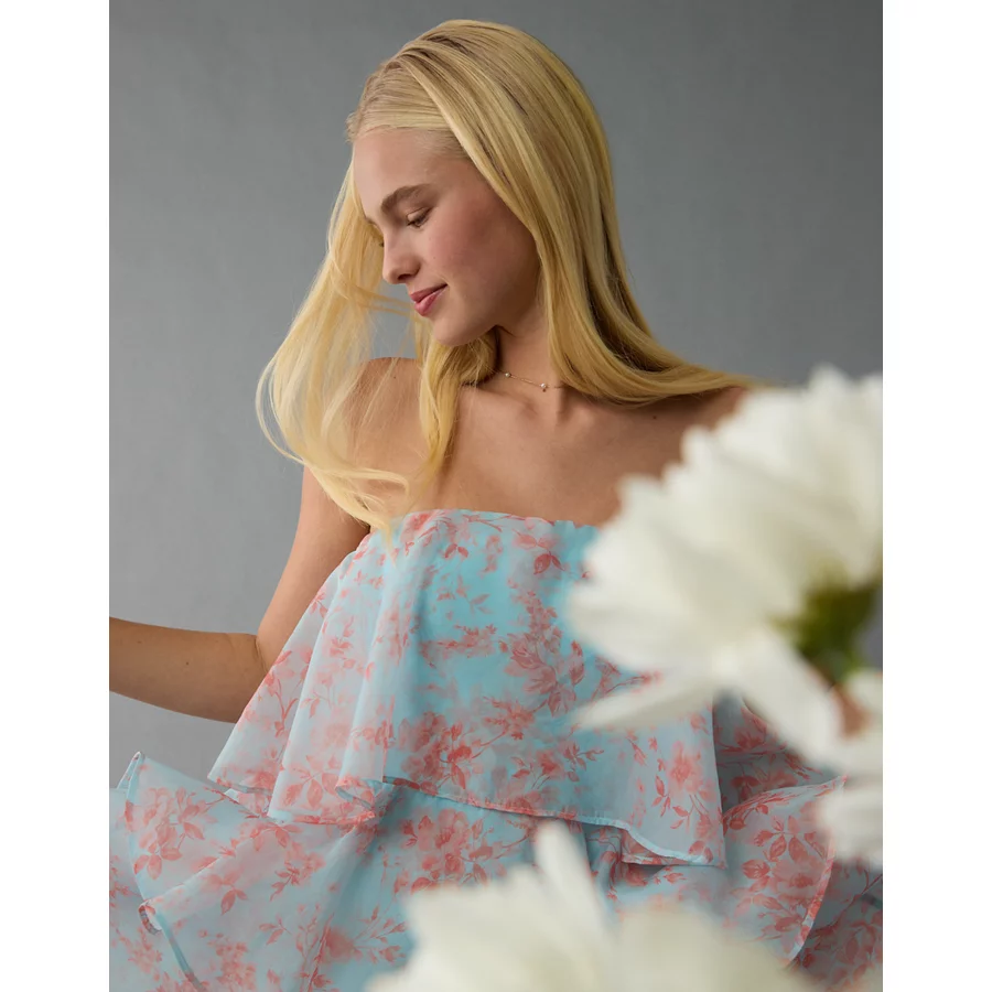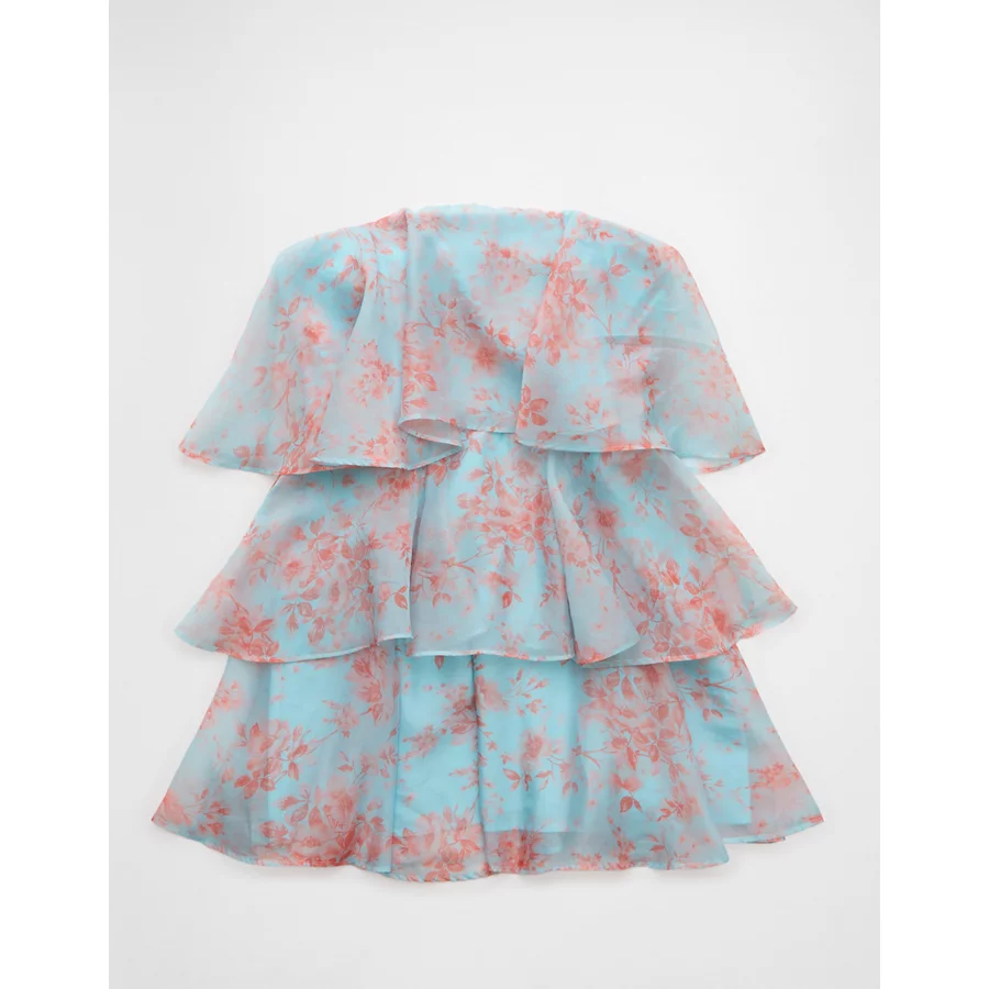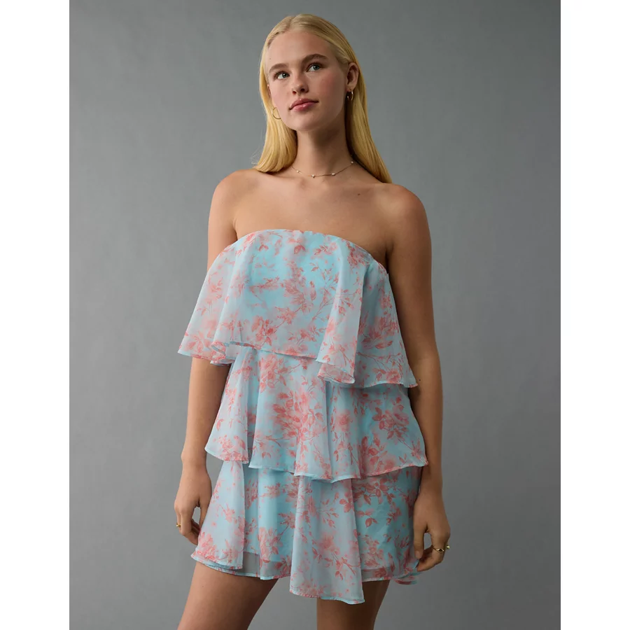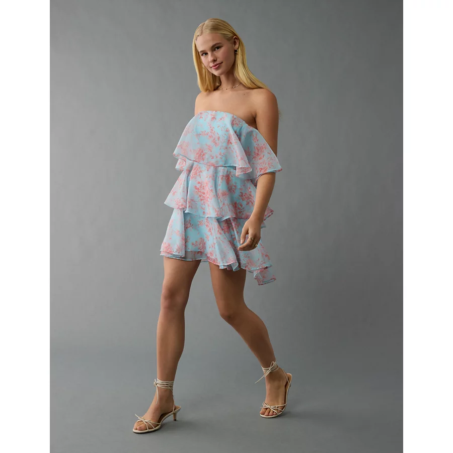 AE Strapless Ruffle Tiered Mini Dress – Blue