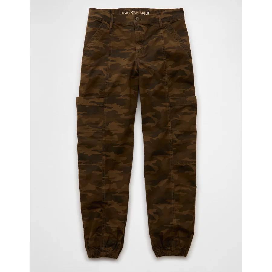 AE Stretch High-Waisted Baggy Cargo Jogger – Camo Green