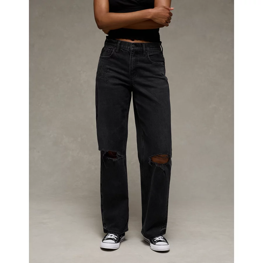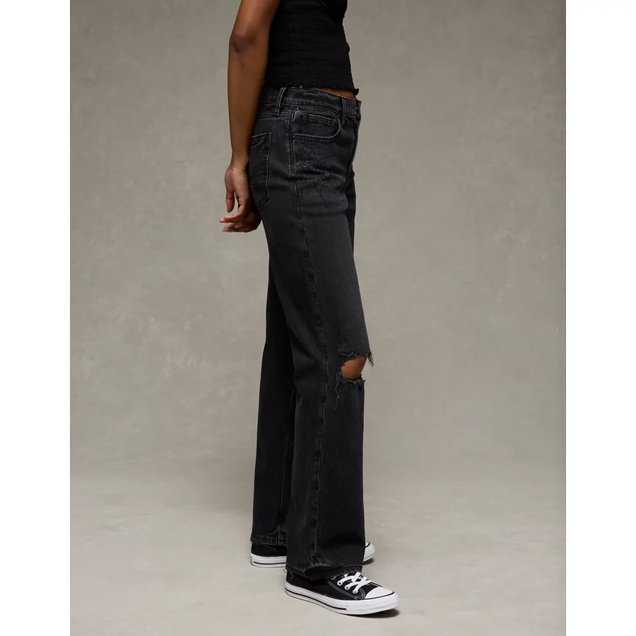 AE Stretch High-Waisted Spiderweb Stovepipe Jean – Raven Black