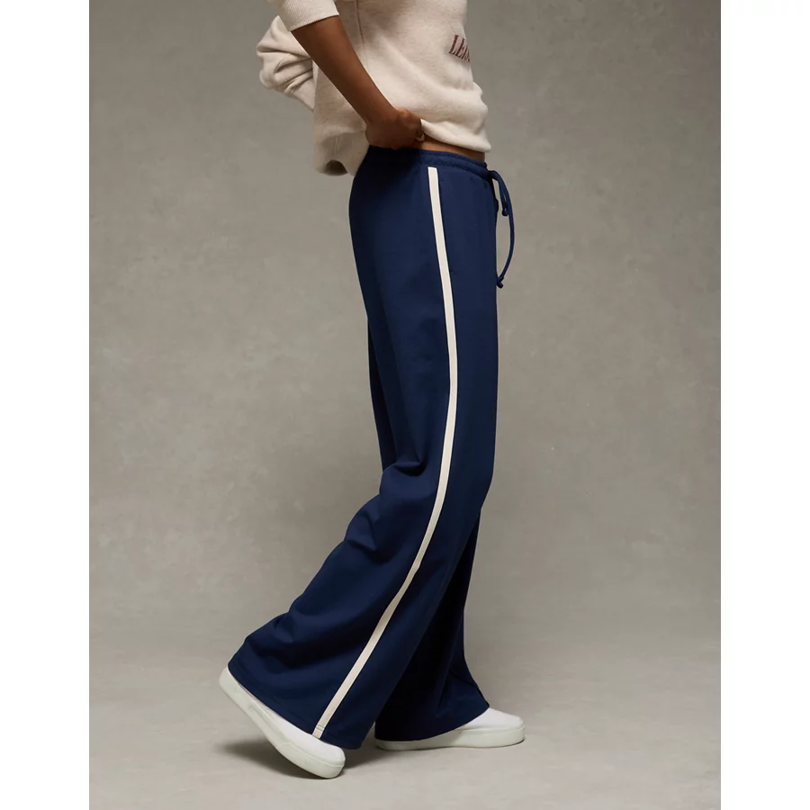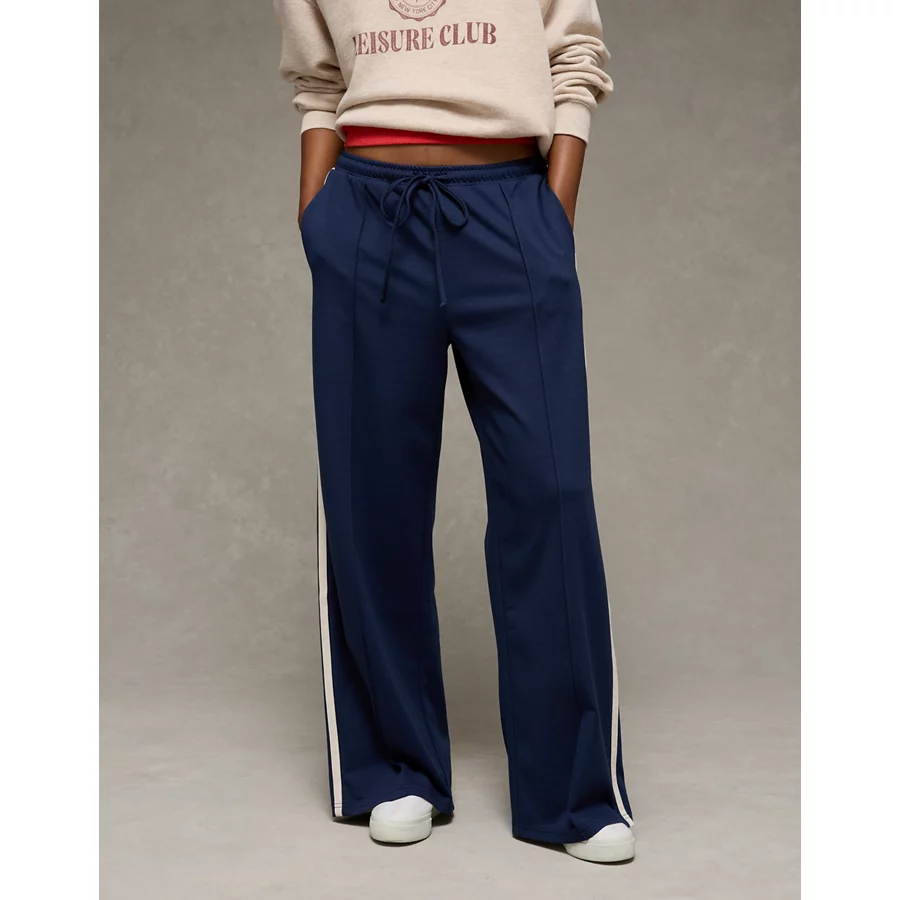 AE Stretch High-Waisted Wide-Leg Track Pant – Midnight Blue