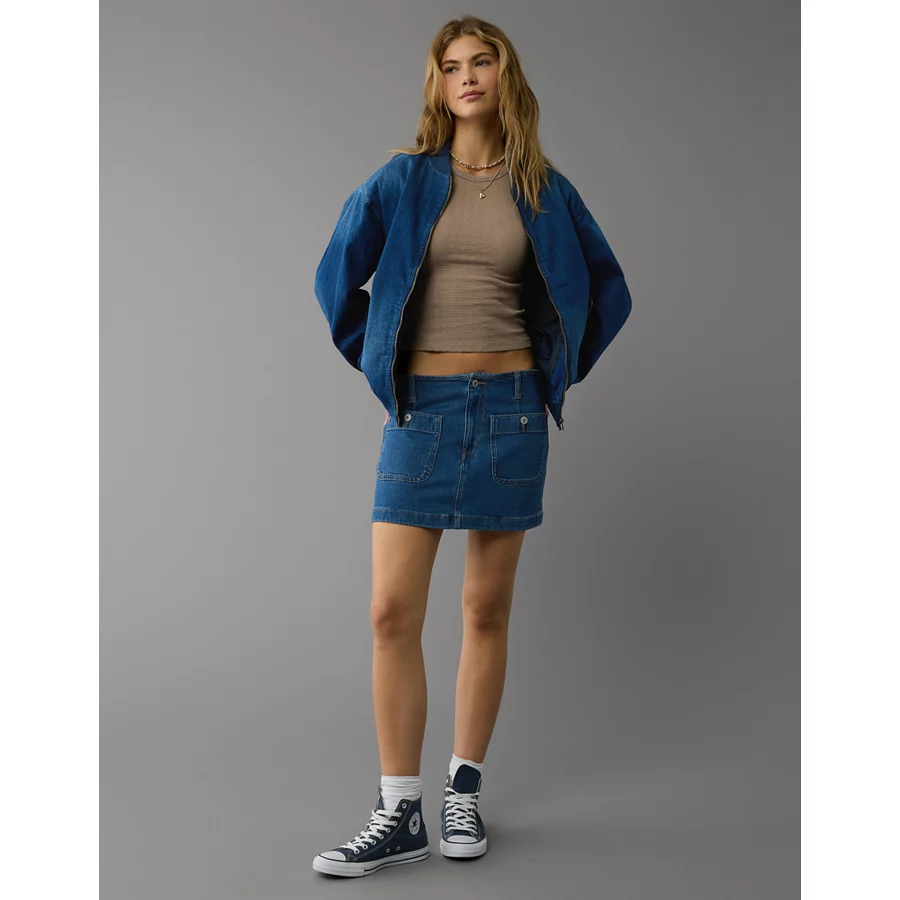 AE Stretch Low-Rise A-Line Denim Mini Skirt – Dark Clouds