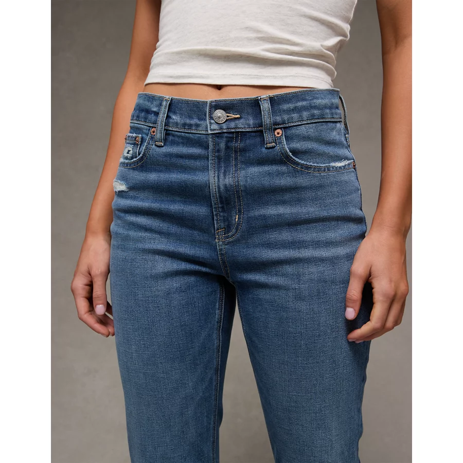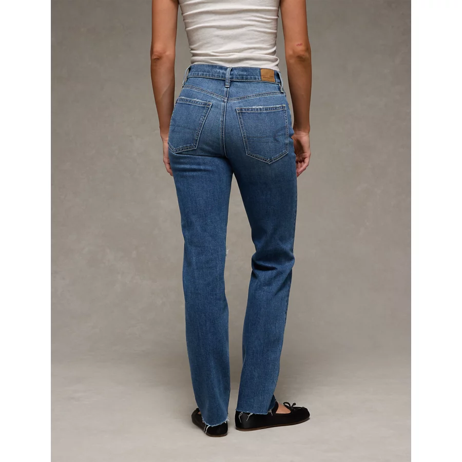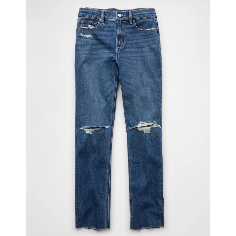 AE Stretch Ripped Super High-Waisted Straight Jean – Dreamy Indigo