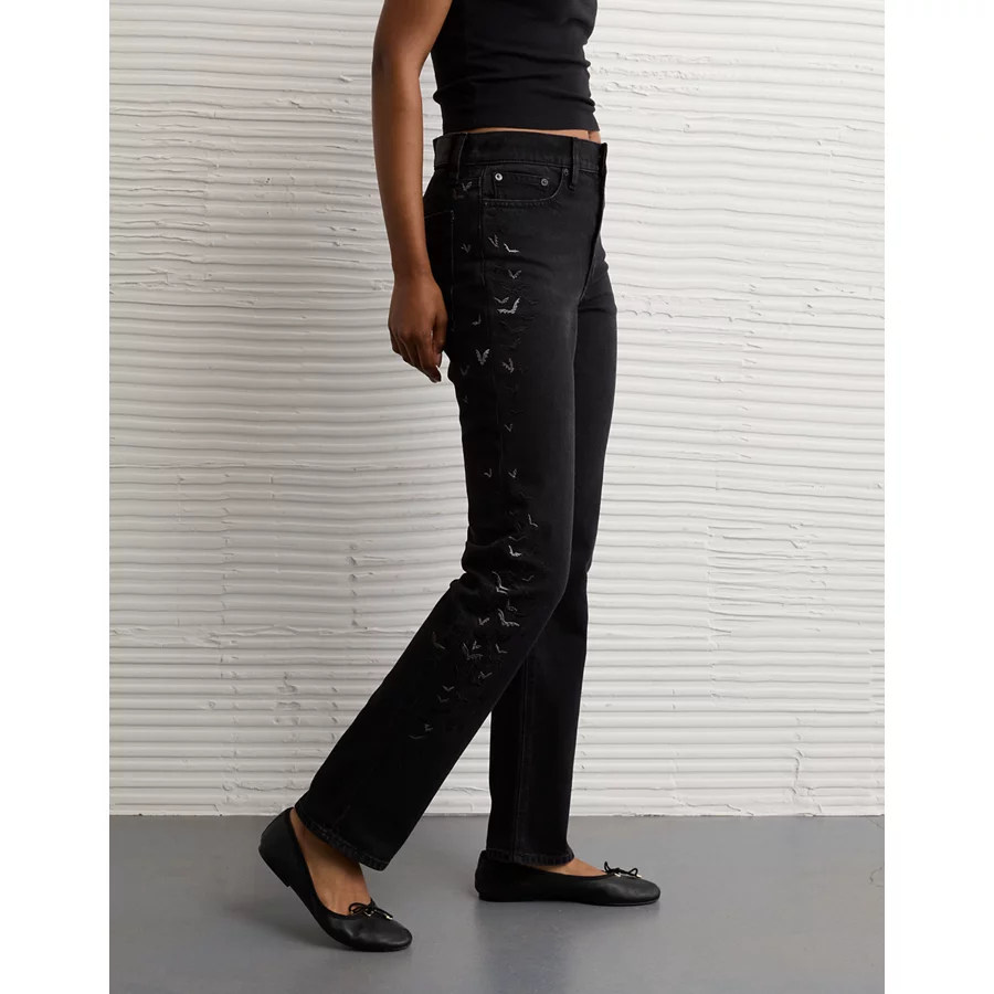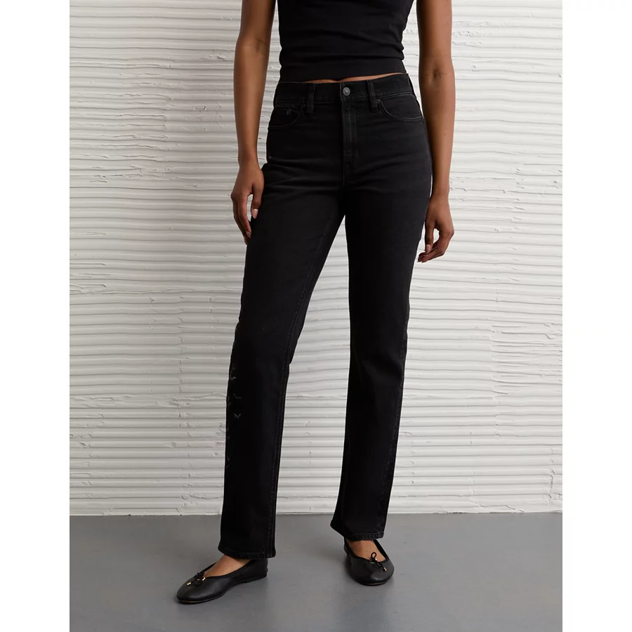 AE Stretch Super High-Waisted Bat Straight Jean – Black